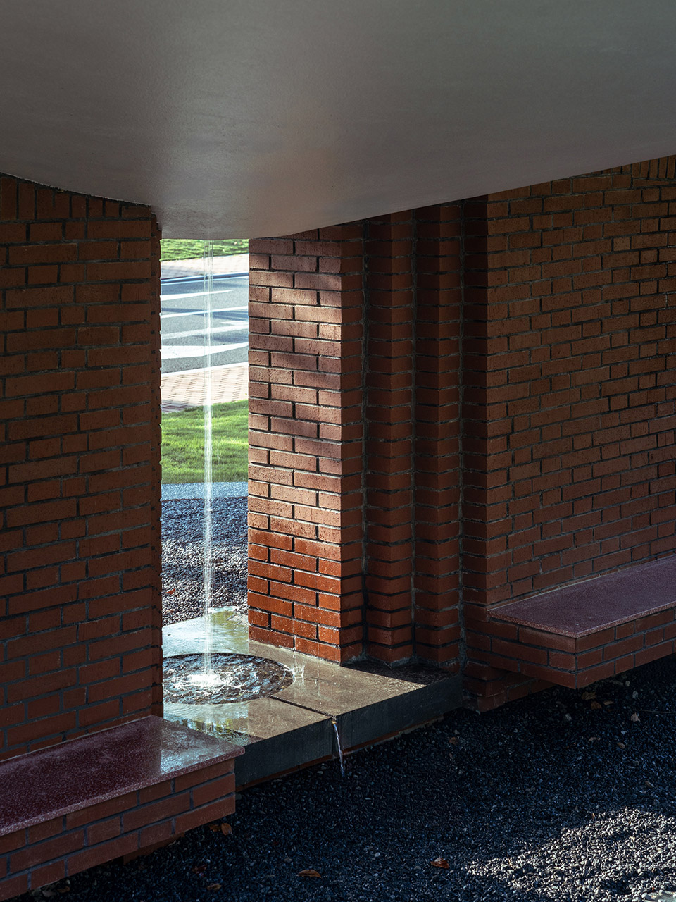 The Cultural Face: A fair-faced brick wall supports the circular water basin, defining the space. Facing the campus axis, the wall serves as a long scroll chronicling fifteen years of college history. At its edge, water cascades from the basin, creating a gentle curtain. This side is outward-looking and monumental—a cultural presentation for the collective. The Natural Face: Facing the wooded slope, we adopted a strategy of “concealment.” Approached via a winding path through the trees, the pavilion gradually reveals itself as the water basin is deliberately lowered. The water reflects the shifting sky and clouds, while the interior floor and seating are embedded into the rising topography. This side is inward-looking and quiet—an invitation to pause and meditate.