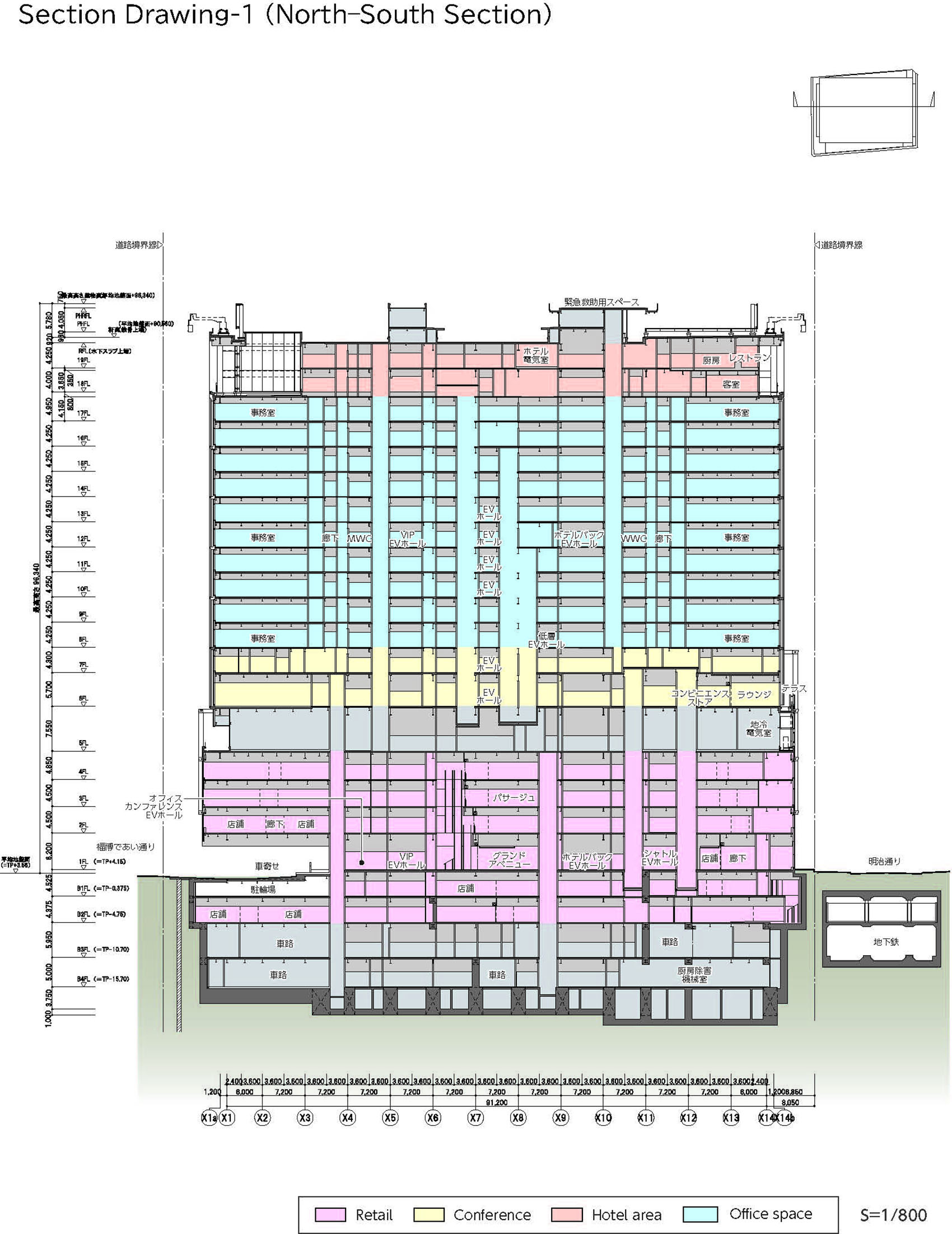 Purpose: Offices, shops, hotel, meeting halls, parking lot