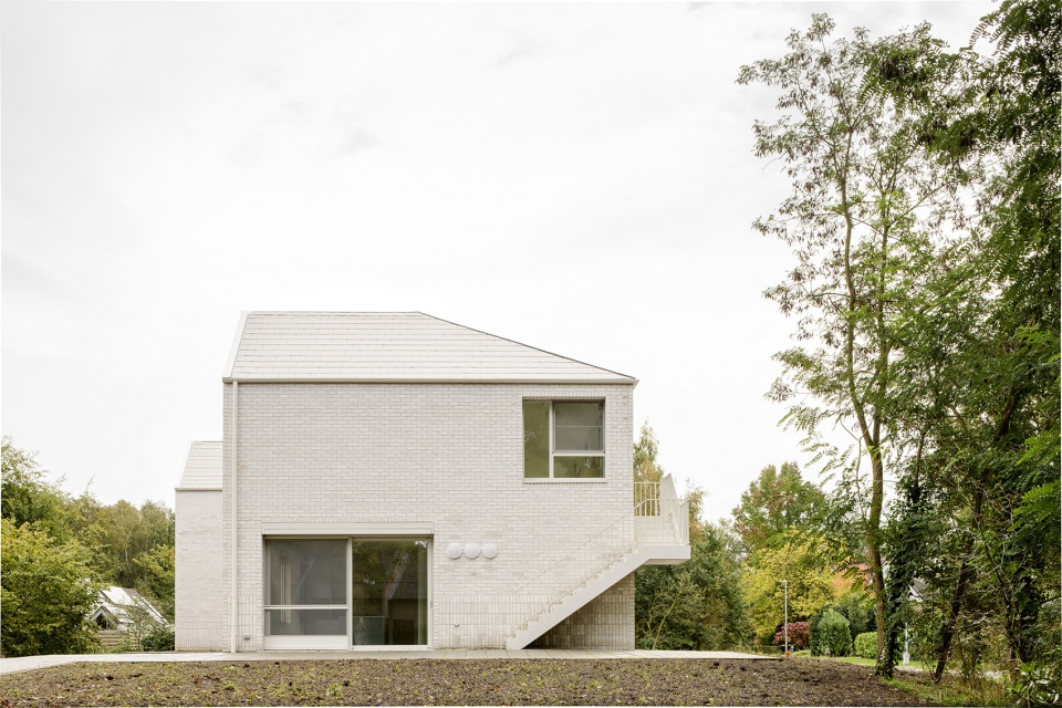 建筑采用克制的浅灰色材料基调,使其根植于绿色的环境之中。砖、细部精致的细木工板以及落水管都融入了这种柔和的色调之中。这种平静的对比使建筑既能安处于景观之内,同时又保持着清晰而自信的存在感。
