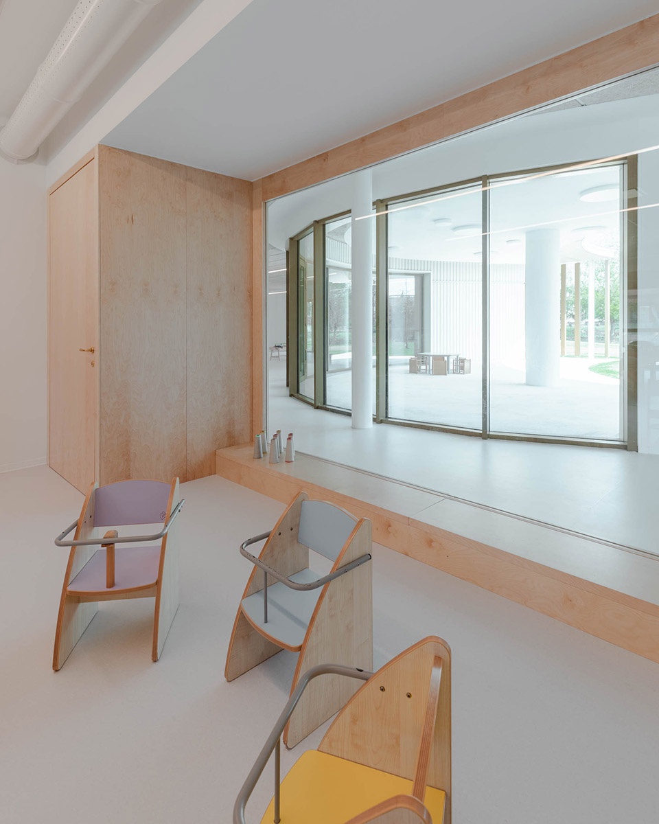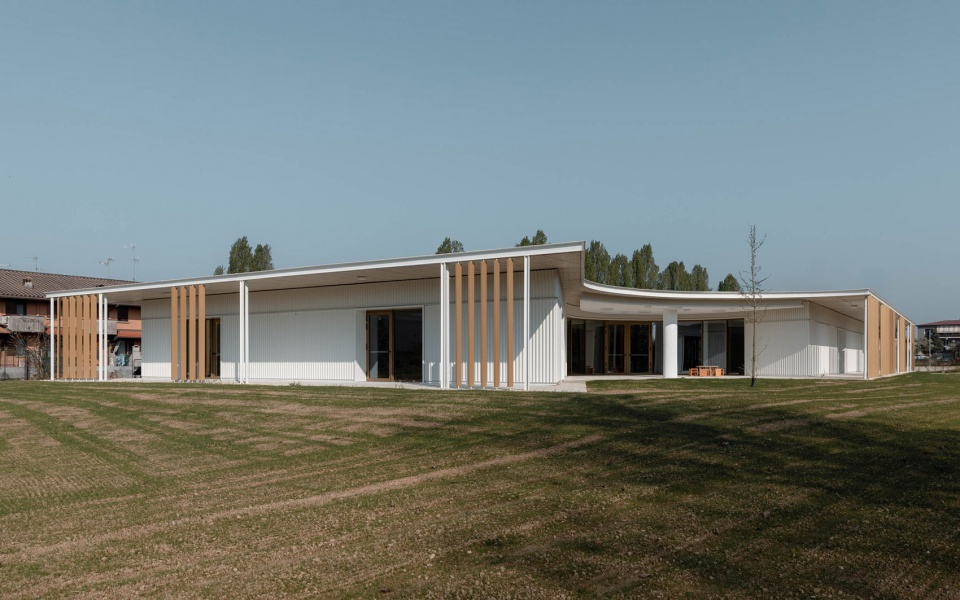 罗马诺-迪伦巴第市新建托幼中心面向0至2岁儿童,被构想为一种“空间装置”,旨在陪伴生命最初阶段的成长与学习过程,将建筑本身置于塑造教育体验的积极角色之中。在幼儿阶段,空间不仅是活动的容器,更在界定人际关系、塑造自我感知以及建立对外部世界的开放性方面发挥决定性作用。基于这一视角,项目通过清晰且可读的空间布局回应教育主题,使每一处环境都能够促进儿童的自主性、方向感与安全感,将教育关怀、空间品质与感知舒适整合为一个统一而连贯的整体。