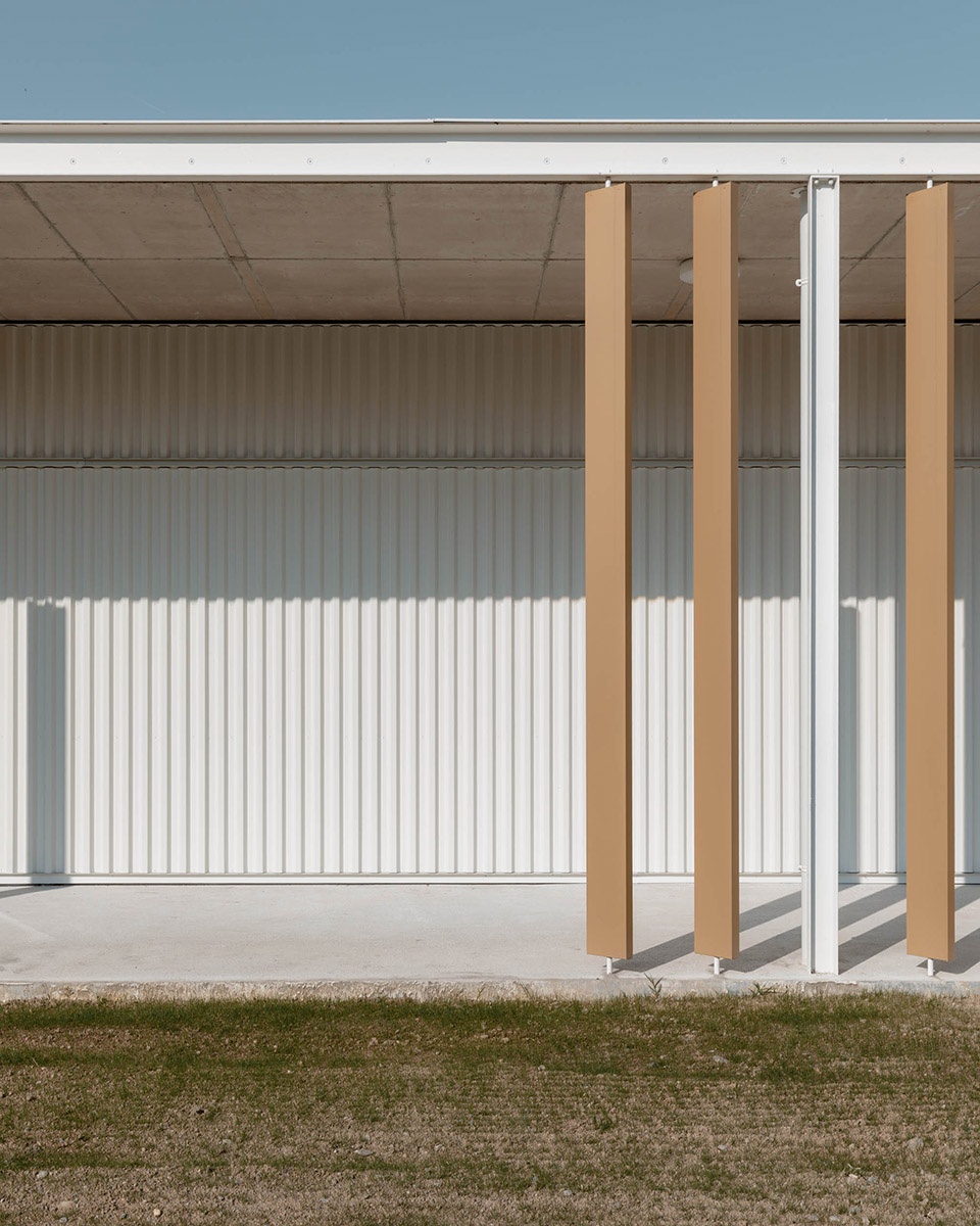 Attention to construction detail, both exterior and interior, plays a central role in the project, translating pedagogical intentions into material and technological terms. The building envelope presents itself as a controlled and refined surface, clad in white aluminum sheet, whose vertical texture interacts with natural light, generating a continuous vibration of reflections and shadows that shift throughout the day. This dynamic behavior establishes an ongoing dialogue with the context, giving the building a presence that is both measured and distinctive.