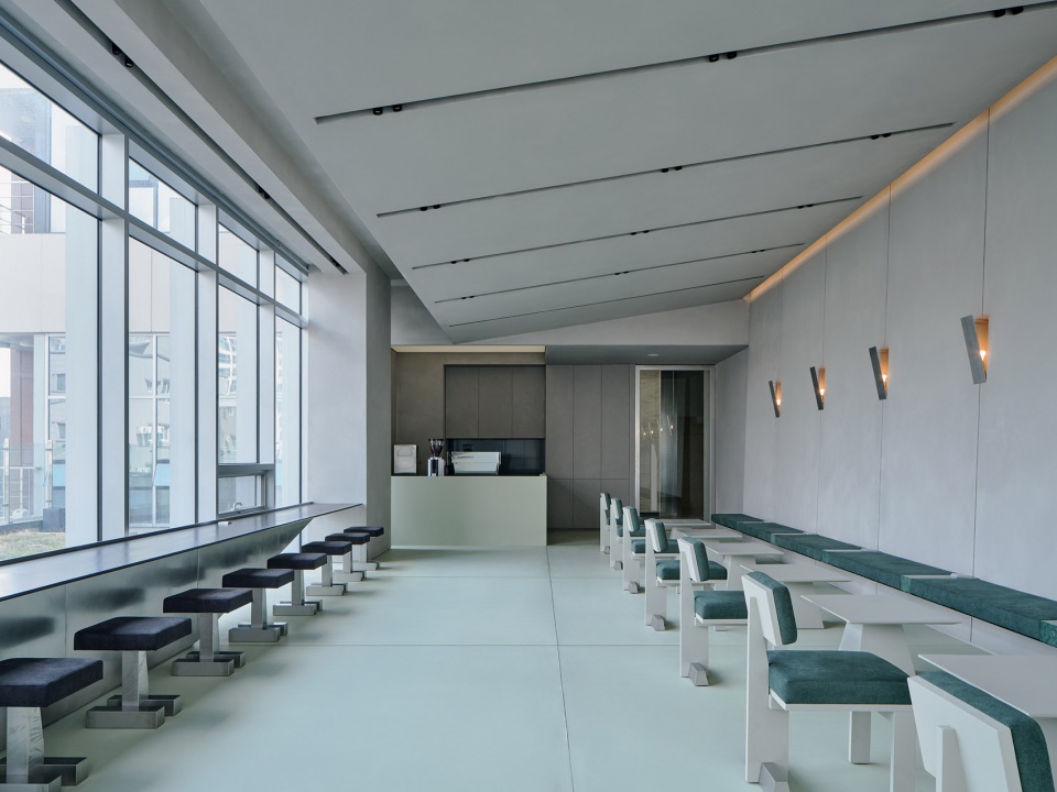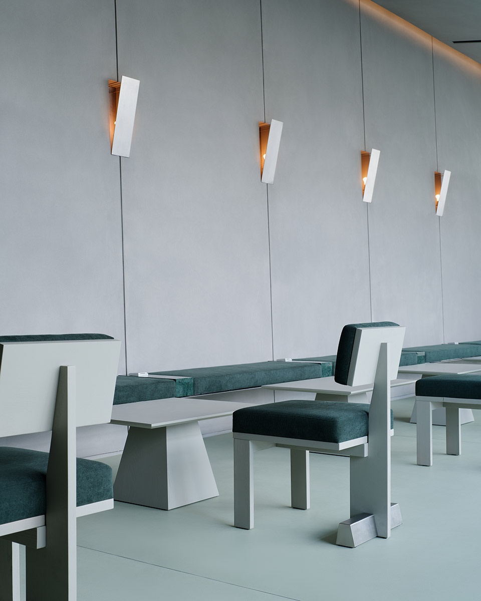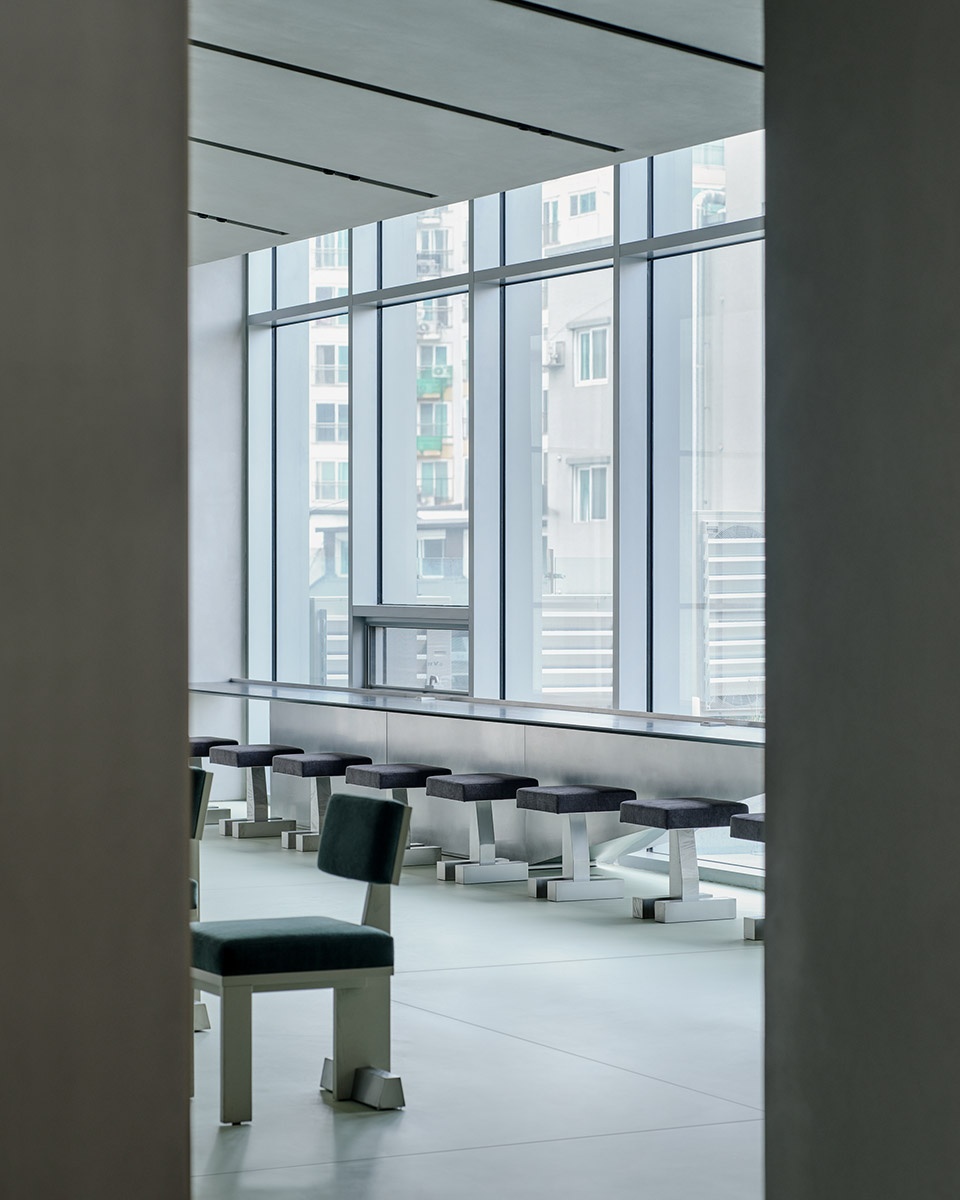 The high ceilings, contrasting with the inpatient rooms, and the environment offering views of the outside served as the starting point for our spatial language.