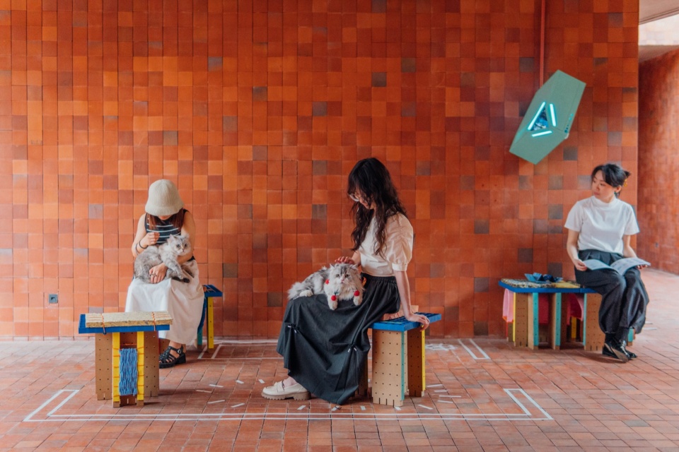 在第九届深港城市\建筑双城双年展(UABB)主展场——粤海城·金啤坊,特别板块由“万籁之迹”、“图书策展”、“寰宇制服”、“循环共创”、“流浪动物之家”及“美术馆联动计划”六个单元组成。作为“流浪动物之家”单元的参展作品,设计以猫的视角为起点,衍生出第一批“转接头”。猫作为亲密而神秘的家庭成员,其生活尺度与人的起居家具往往存在两套独立的逻辑。装置通过对人与猫日常用具的双向尺度研究,寻求一种共享的界面和简化的室内生活设施原型。