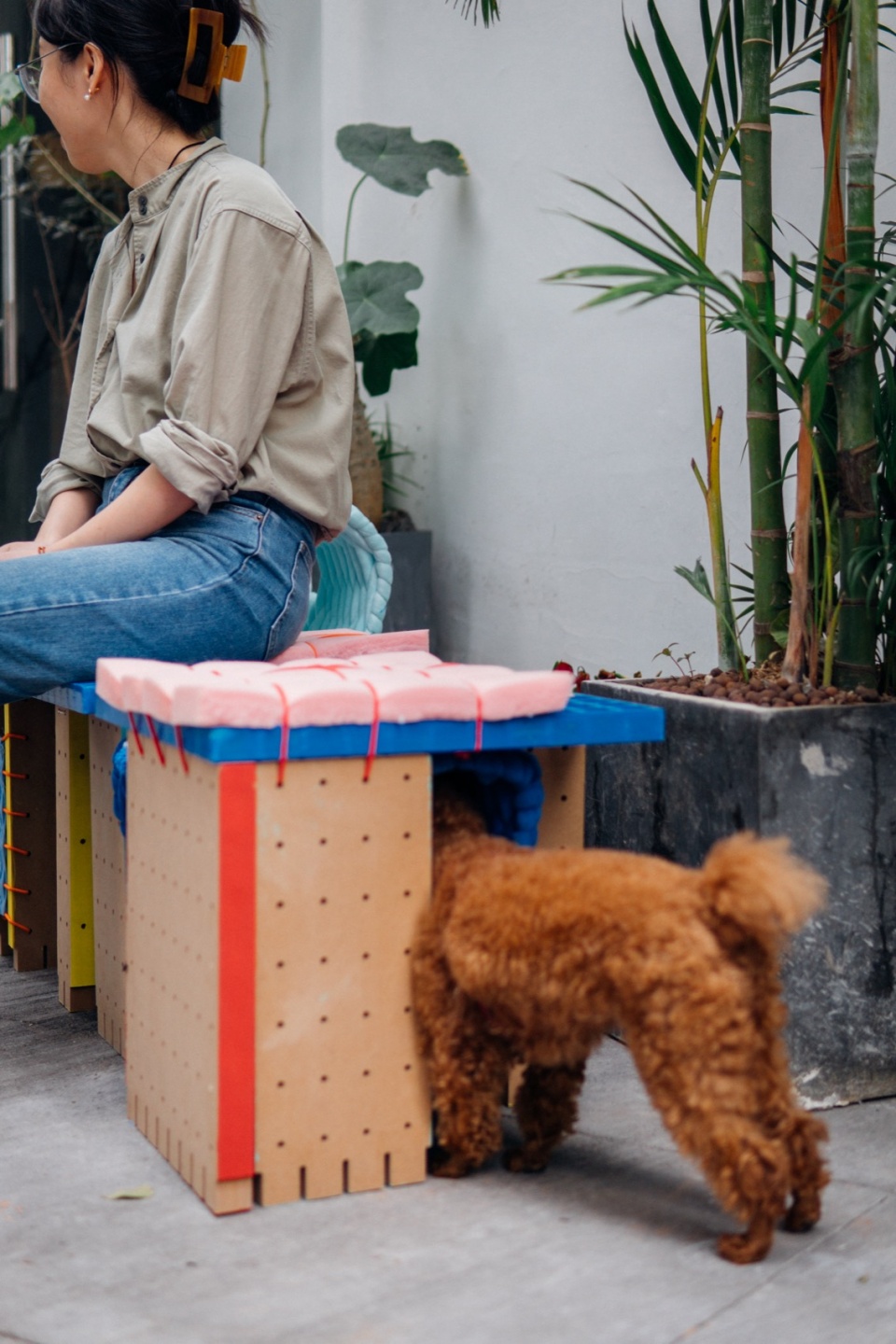 宠物已成为当代城市人对向往生活与精神状态的一种心理投射,以亲密家庭成员的姿态满足人的陪伴需求与情绪转化。它们被动地从野外进入城市,寄居在“为人”打造的硬质空间中。在这些定型居所里,宠物们自发地寻找剩余空间停留、休憩与玩耍,与人共享城市。作为陪伴者,它们又是家中有个性的“小主子”,拥有独特的喜好和态度,不应被定义在任何固定的单一空间内。
