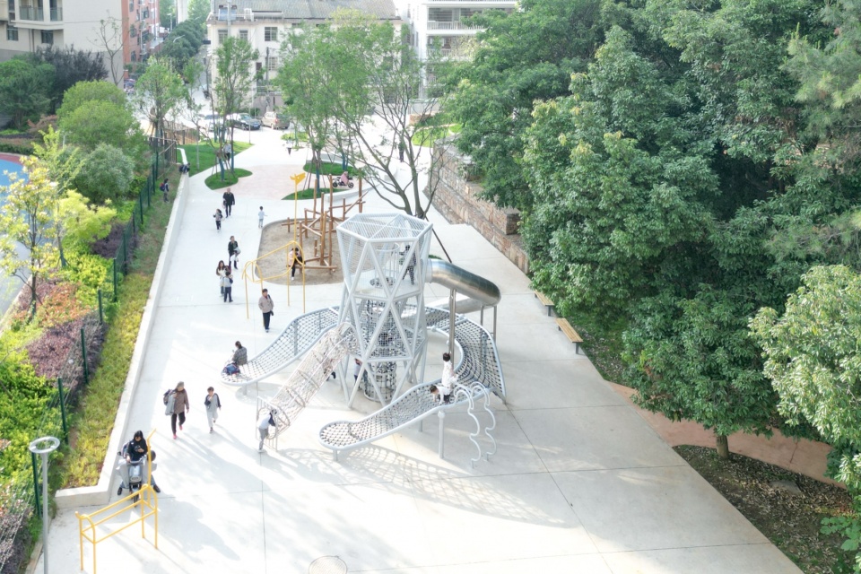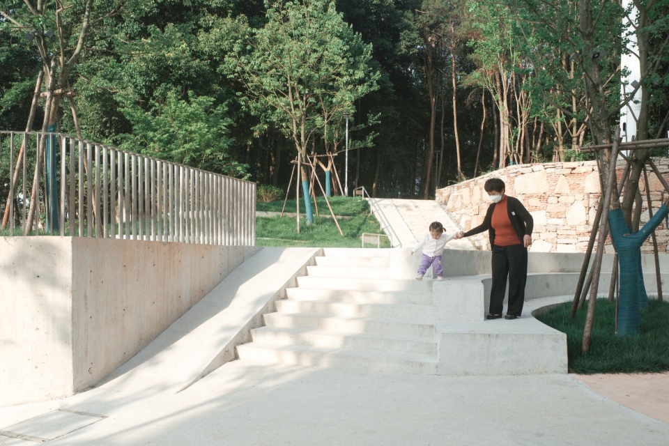 This small pine forest offers opportunities for people to interact with one another. The project makes the most of existing resources, preserves nearly all the pine trees, and leverages the original terrain’s elevation changes to present a park that embodies both sustainability and a sense of discovery. After completion, the park has become deeply loved by the neighboring villagers, high-rise residents, and students, especially bustling during after-school hours. This new space not only physically connects two communities but also fosters positive interactions between villagers and residential residents. It provides a fun, inclusive, and open public natural place, giving all users a stronger sense of accessibility and belonging.