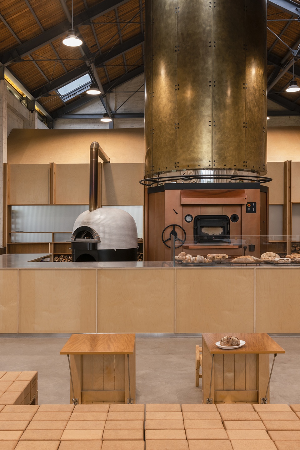 Based on this assessment, we redesigned the scale of the stone oven. Rather than having the space accommodate a piece of equipment, we chose to make the equipment an integral part of the space itself. We raised the oven to a height of six meters, extending it vertically to the ceiling, transforming it into the centerpiece of the space and establishing it as the absolute focal point—second only to the views outside.