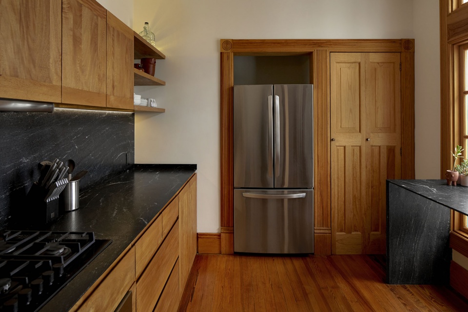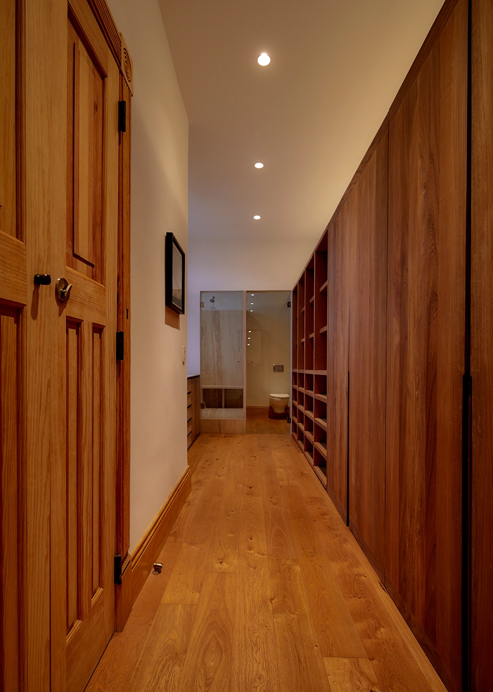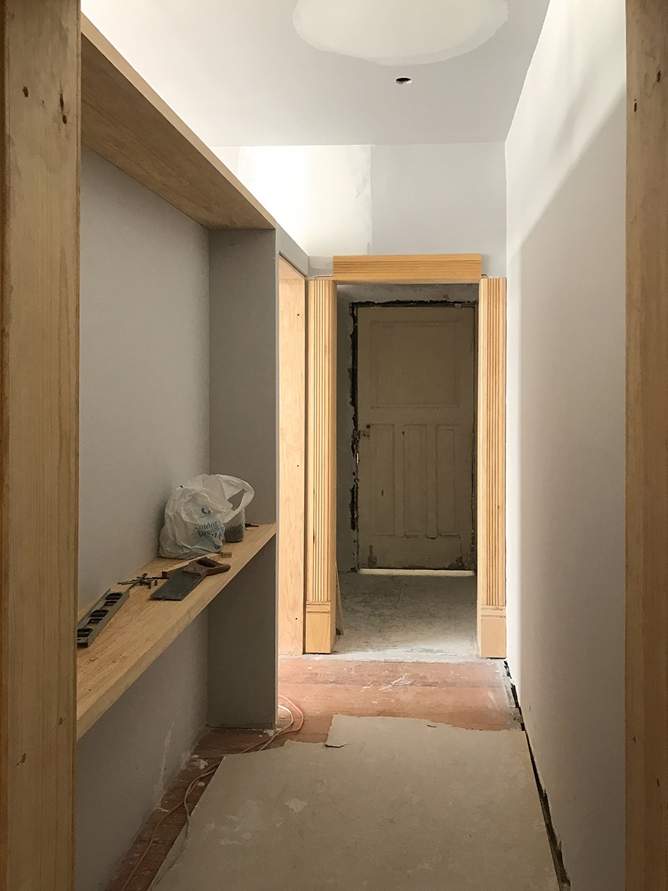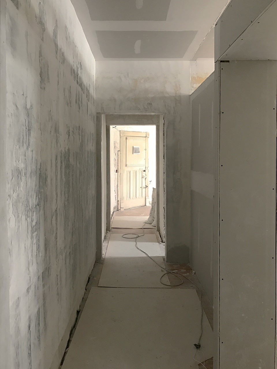 与其将一切拆掉重建,我选择保留建筑原有的“骨架”。原有的墙体、门和层高本身就赋予空间秩序。在此逻辑下,我们对功能进行了调整:两间卧室、厨房和起居空间被重新规划,以满足现代家庭的需求,同时不触碰建筑原貌。从一开始,我们的目标是让建筑重现Arts & Crafts的精神,但又不把它变成博物馆式的空间。因此,我们仔细重制了所有线脚和细节,修复了原有门窗框架和外墙,使其恢复至原来的样貌。这样,公寓依然可以讲述自己的历史故事。