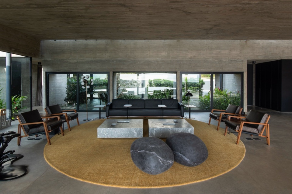 业主热爱巴西艺术与文化,希望住宅能够体现其生活方式,并在设计上具有鲜明特质。在设计过程中,Luciano面临的最大挑战,是如何在满足大体量住宅需求的同时,使其不被感知为笨重的整体,而是与周围景观和谐融合。为此,他将住宅主要功能组织在一个水平层面,并辅以一个隐藏层,用于布置设备空间与健身房,从而实现与环境的平衡关系。