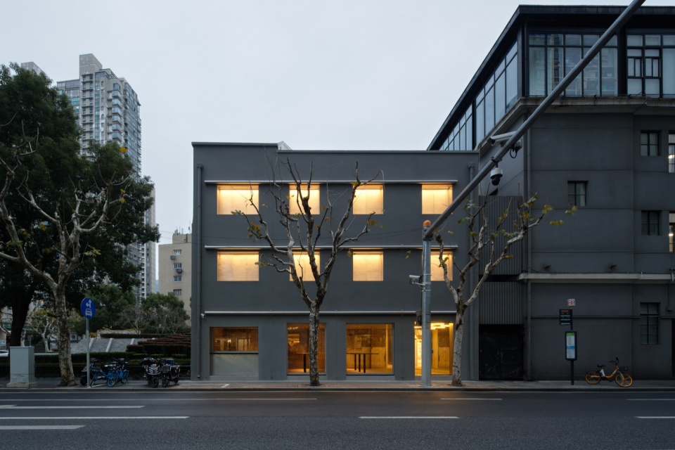 dongqi Design has renovated three different buildings into a multi-functional complex that integrates retail, exhibition, F&B and office spaces in downtown Shanghai. The project consists of a three-story brick-concrete building facing the street on the north side, an 8-meter-high factory building, and a single story brick-concrete building to the south. The ground floor of the three-story building serves as a leisure area, while the second and third floors are office areas. The factory building accommodates a retail area and an independent VIP room. The single-story building on the north side contains a catering area. All functional zones are organically interconnected while remaining separated.
