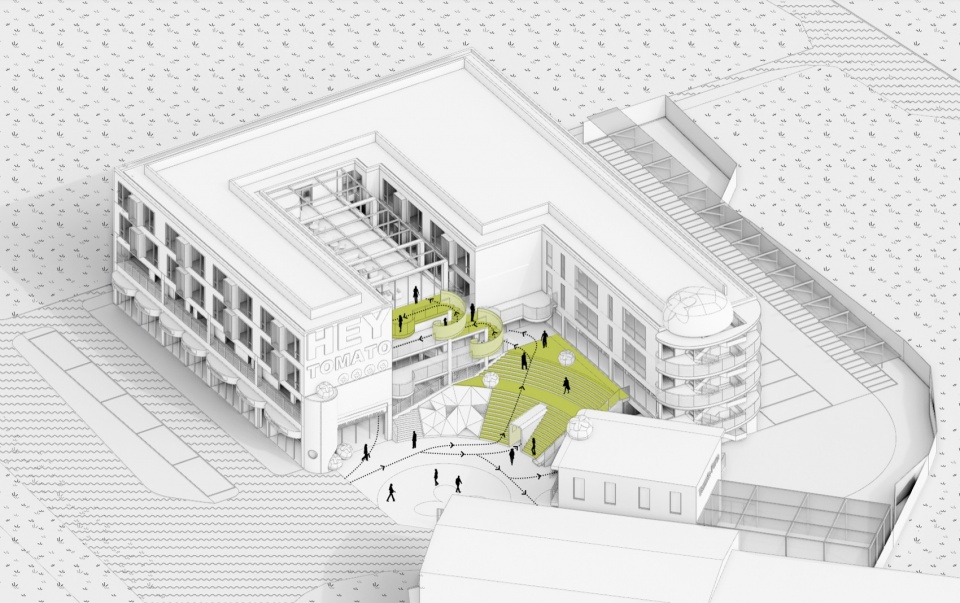 ▼番茄图案的入口广场,The entrance square with tomato patterns