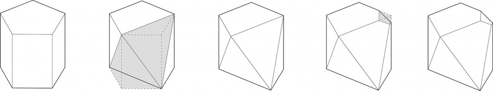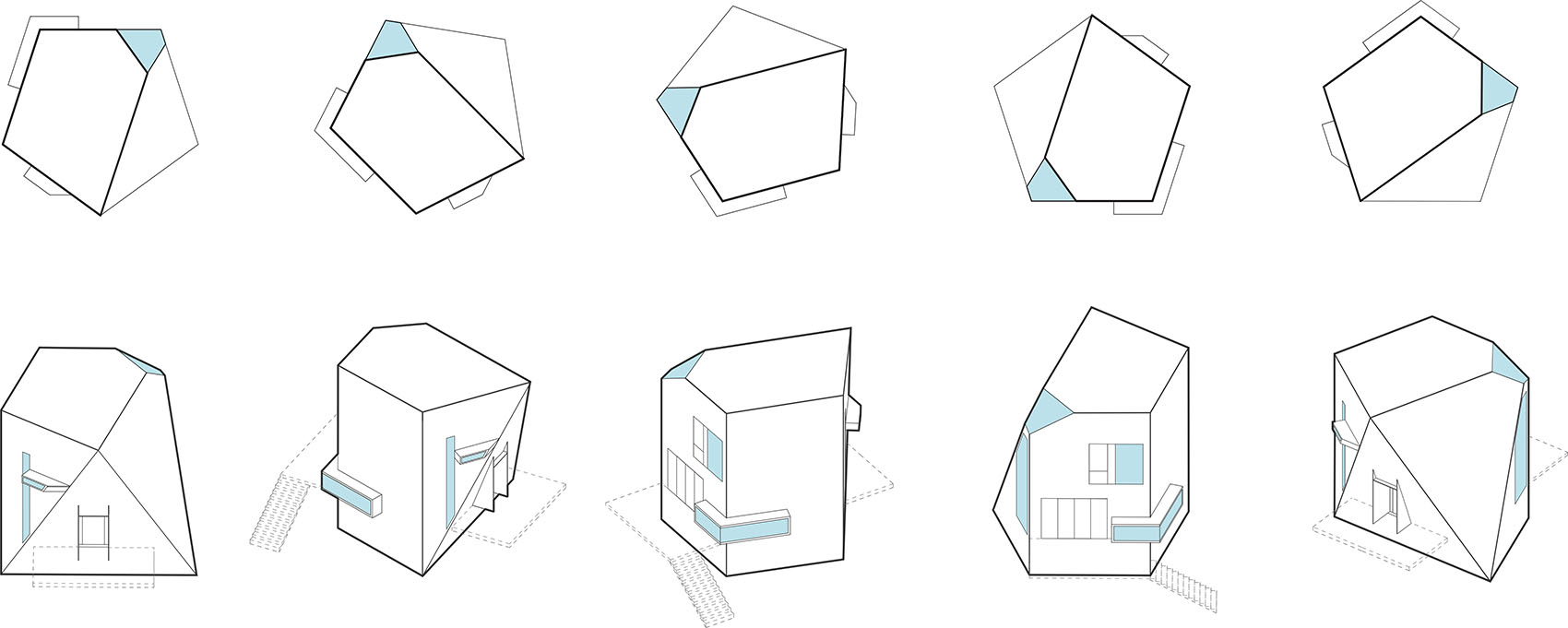 ▼潜行之屋五边形体块生成过程,pentagonal volume generation process
