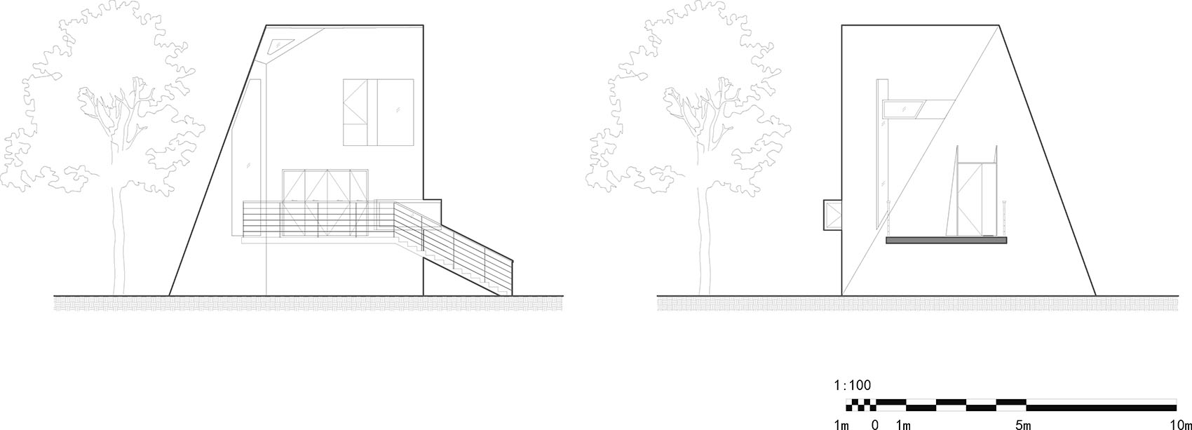 ▼木屋封闭而倾斜的三角面,closed and sloping triangular façade