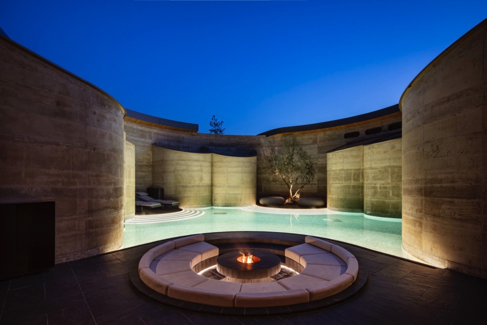 NOT A HOTEL濑户内的住宅被设计为一个整体统一的大空间,浴室与储藏空间被整合进独立的功能体块之中。每个体块顶部均设有天窗,无论身处何处都可仰望天空,在开放性与私密性之间取得平衡。传统的日式浴池、宁静的色彩体系、户外火坑以及加热无边际泳池,共同营造出从居所到自然的无缝过渡。