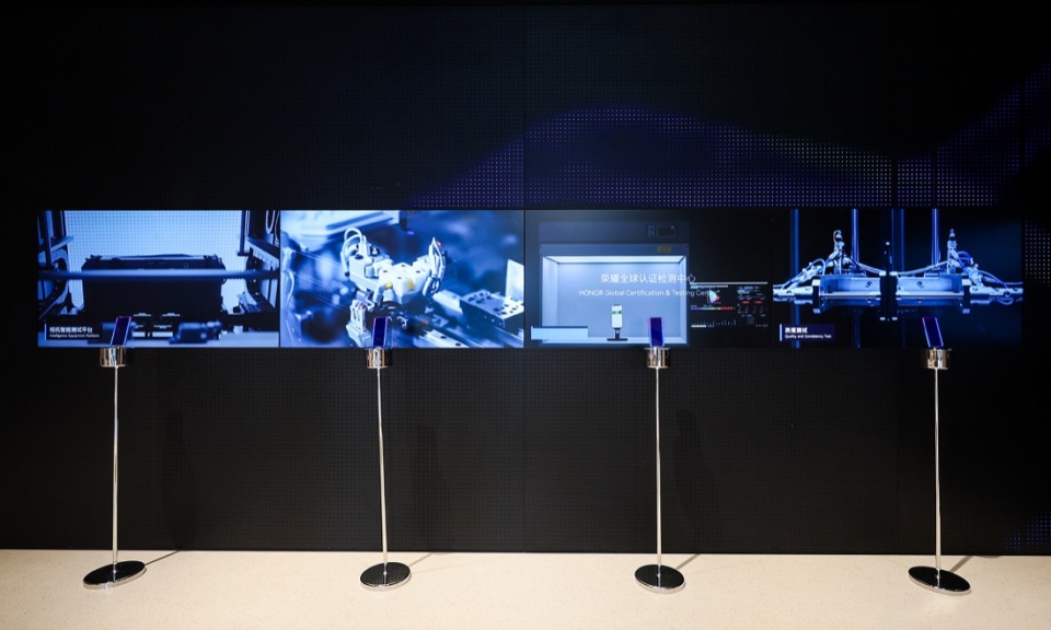 Here, HONOR’s diverse product portfolio unfolds through clear, category-based displays. A broad spectrum of smart devices integrated into everyday life is thoughtfully curated, revealing a holistic vision of tech-powered living.