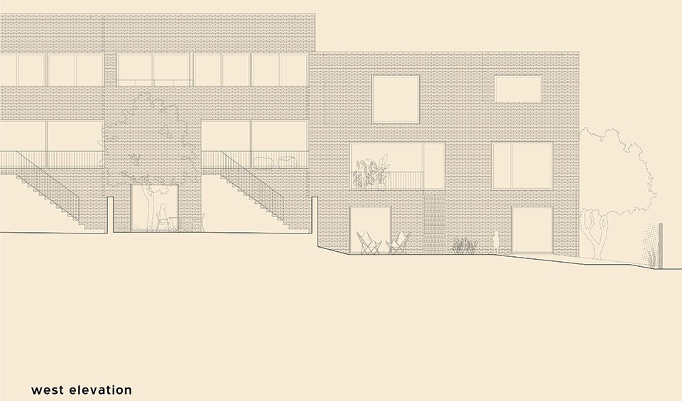 The seven houses were designed around patios that create intimacy and ensure comfort in the daily use of diverse outdoor spaces. The gardens use local and climate-adapted vegetation, focusing on shade, wind protection, and inspiring an outdoor lifestyle for each unit. All the social areas are at street level, with bedrooms on the upper floor. The gardens connect directly to a multifunctional ground floor, open to leisure, work, or relaxed living.