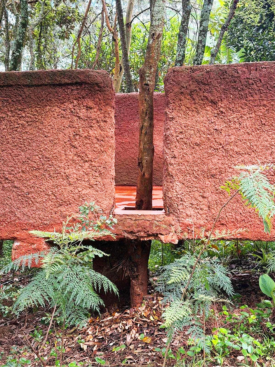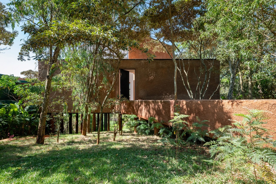 Set within the wooded landscape of Karen, Nairobi, Kaloki Nyamai Studio is conceived as a place of artistic production, reflection and dwelling. The project occupies a narrow 1.33-acre site that slopes gently toward a valley, allowing the building to establish a quiet relationship with the surrounding landscape while maintaining privacy from the road.