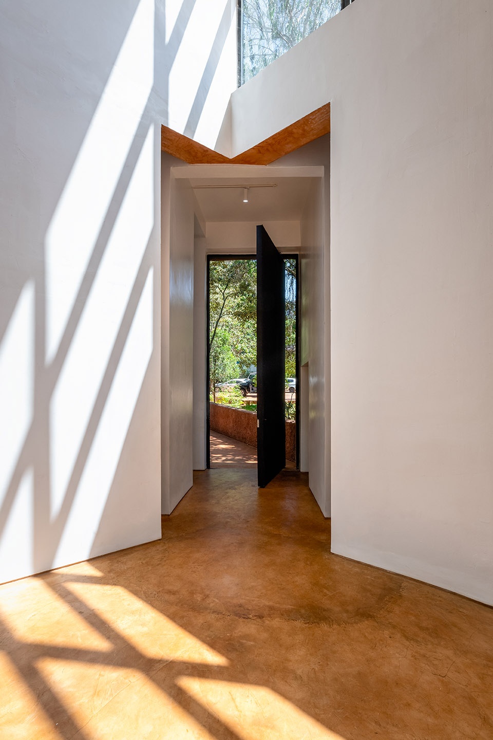 a polished low carbon concrete and earthen floor creates continuity from outside to in