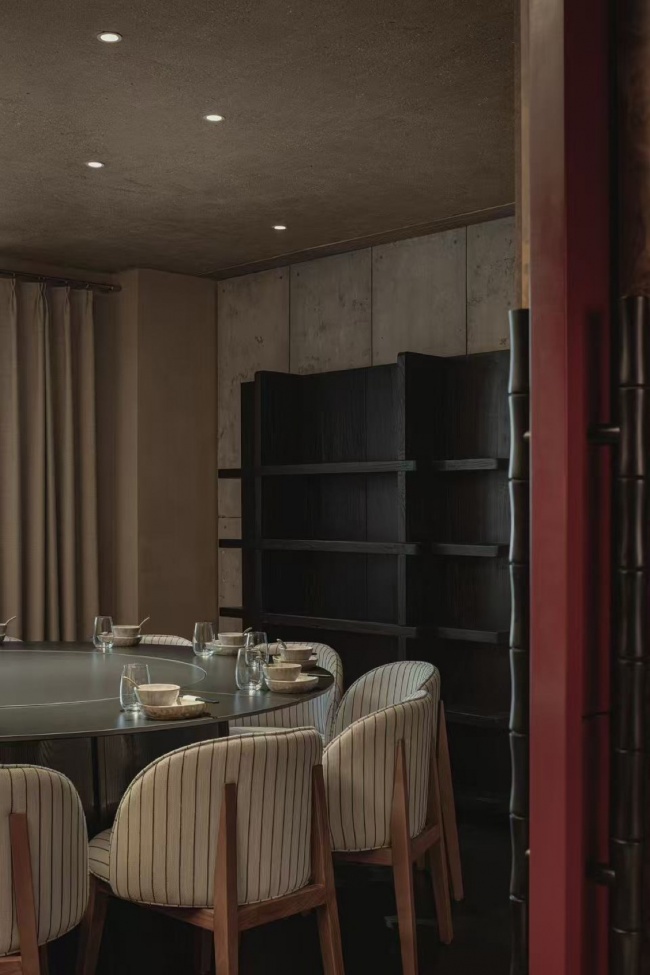 The second and third floors are primarily dedicated to private rooms. We have designed a variety of private room scenarios to accommodate small parties, family gatherings, and business banquets. Along the upward circulation and within the transitional areas leading to the private rooms on the second and third floors, we continue the exhibition-like quality of the first floor, providing spaces for pausing and interaction within the overall dining scenario.