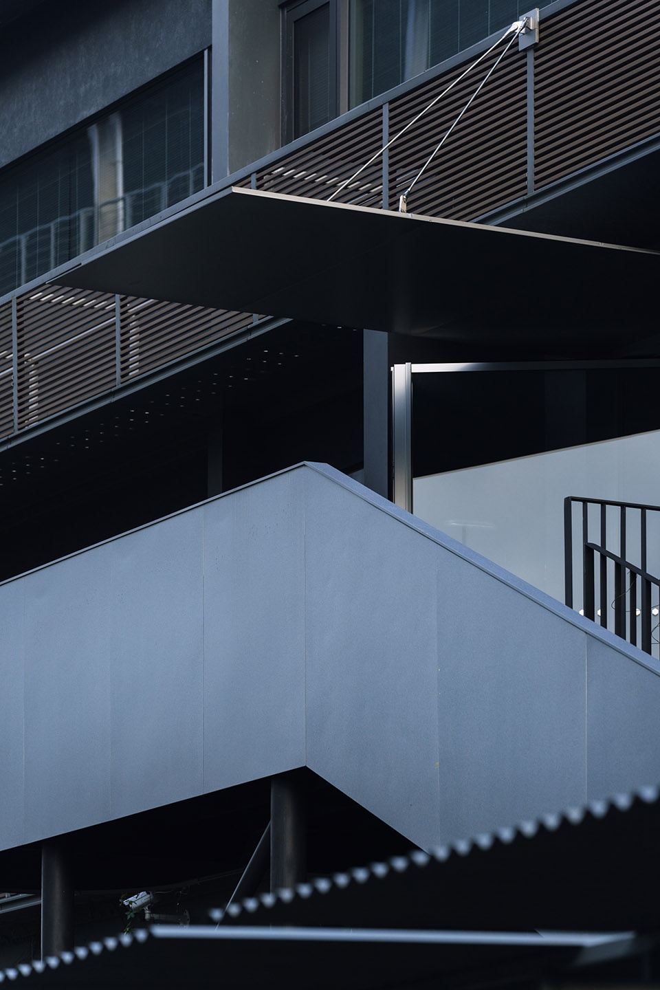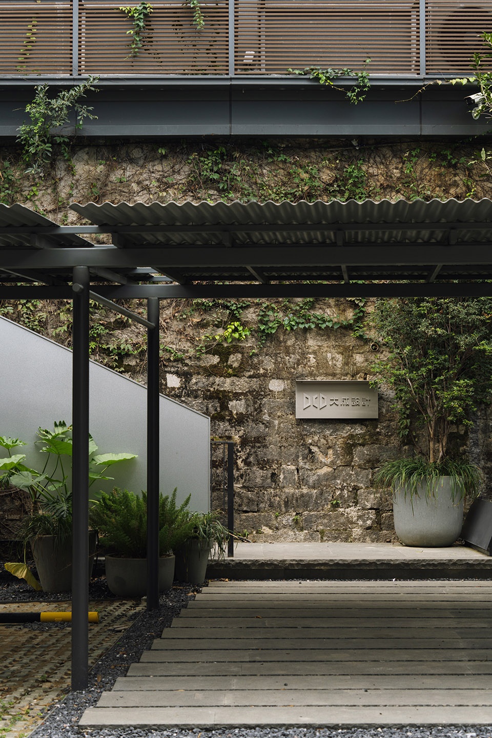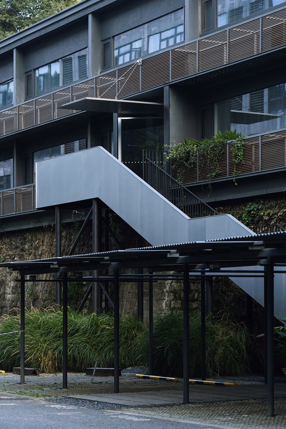 The building follows the natural slope of the mountain; together with the mountain mass, it encloses a valley—the building itself becomes one of the paths leading into the valley. Approaching the site from the outside, the building acts as a gate tower at the foot of the mountain. The carport is organized as a linear sequence resembling a “long pavilion,” guiding the direction of movement and reinforcing a sense of rhythm and procession upon entry.