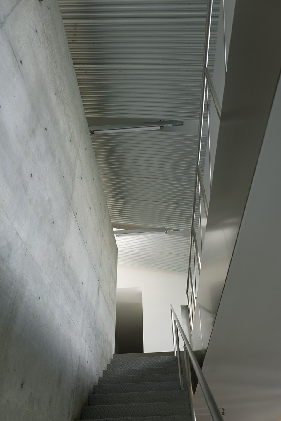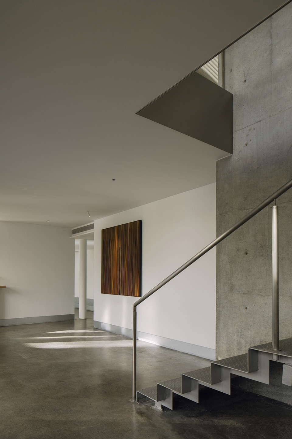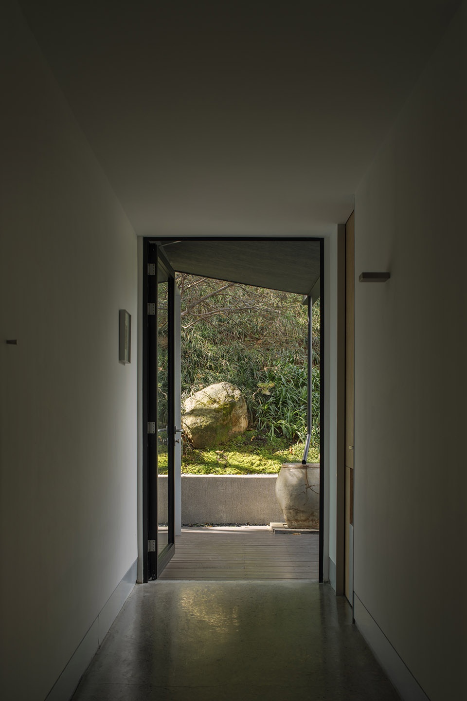 空间组织上,强调水平方向的贯通与流动性。垂直方向上下两层通过室内楼梯连接,不仅作为空间转换的节点,也如雕塑般存在;视线在行进中先被压缩,而后到释放,最终在豁然开朗处到达情感的高峰。