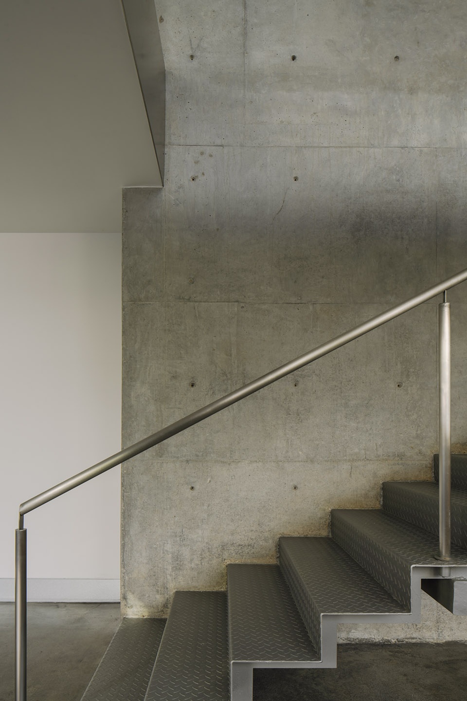 Spatially, the emphasis is on horizontal continuity and fluidity. The two levels are connected by an internal staircase, which serves not only as a node for spatial transition but also as a sculptural element. Sightlines are compressed during movement and then released, culminating in an open area that marks the emotional peak.