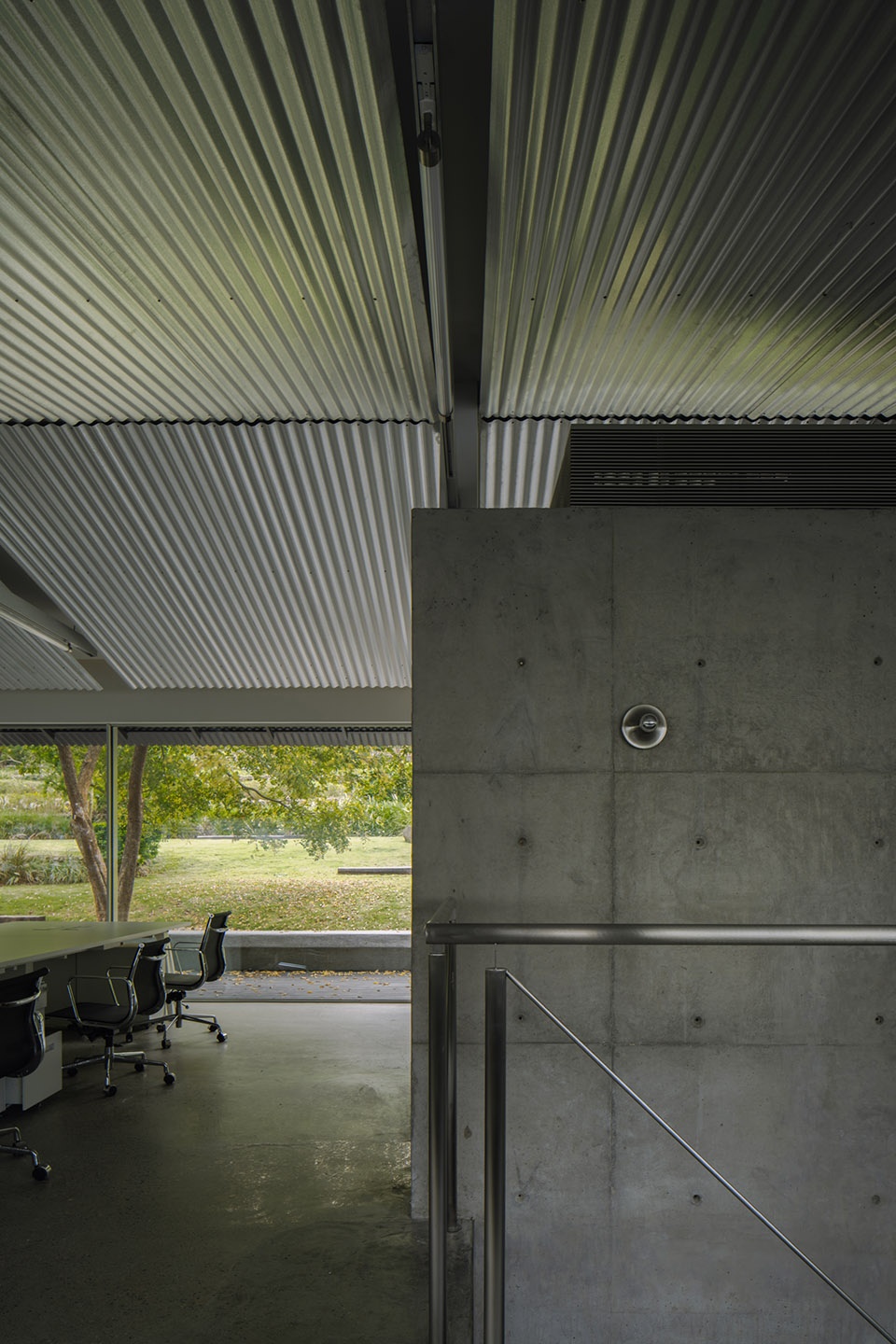 The park landscape uses gently sloping lawns and low vegetation, smoothly connecting with the building’s second-floor entrance to create transitional zones for arrival and lingering, enabling coexistence between people and nature.