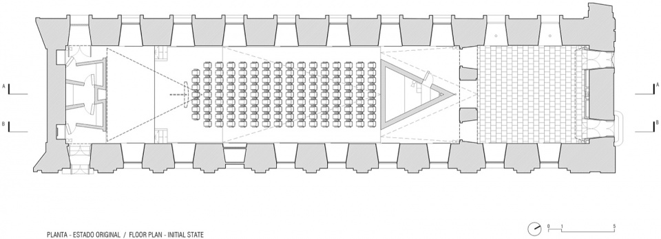 该项目提出将雷纳·索菲亚博物馆原有礼堂改造为一个用于视听媒介的新空间。为实现这一目标,除了为这一标志性博物馆空间赋予新的特质之外,还需对入口与观众席区域进行改造。同时,还需对空间的材料构成进行干预,以提升其声学性能,并安装全新的影像与音响系统。