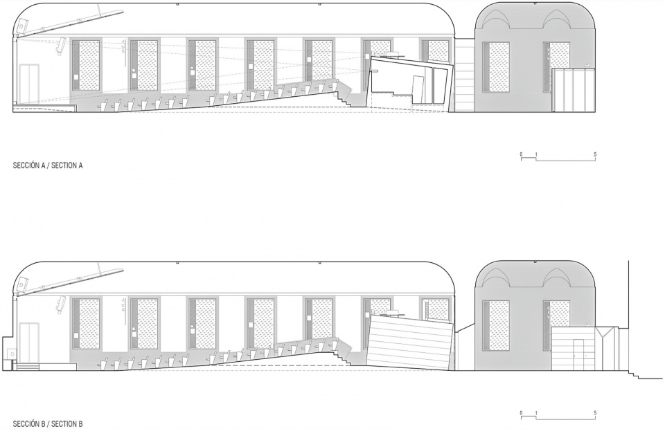 The project proposes the transformation of the former auditorium of the Museo Reina Sofía into a new space for audiovisual formats. To achieve this, in addition to giving a new character to this emblematic museum space, it is necessary to modify both the entrance and the seating area. As well as intervene in the materiality of the hall to improve its acoustic performance and install a new image and sound system.