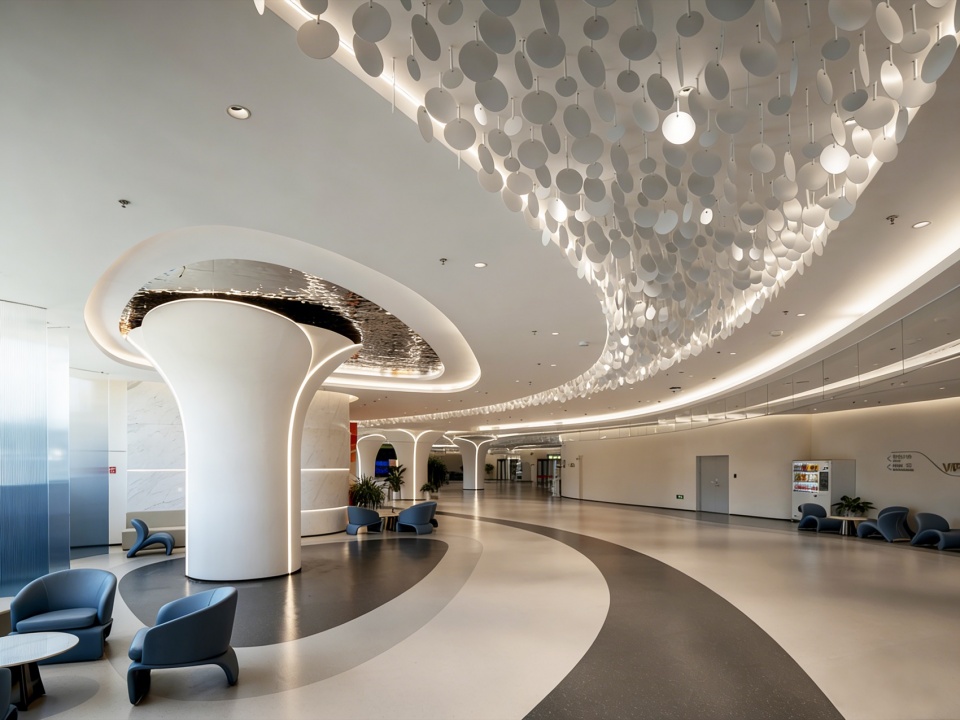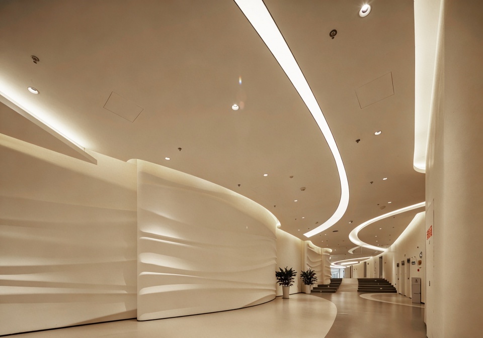 The interior space continues the architectural form language. The design of the audience lounge incorporates elements such as layered waves, eroded reefs, and foaming surf. The ceiling and floor adopt streamlined designs, and the smooth, spacious space naturally guides the flow of visitors. Layered textures are embedded in local walls, simulating the natural traces of wave erosion, thus achieving a balance between dynamic flow and static deposition.