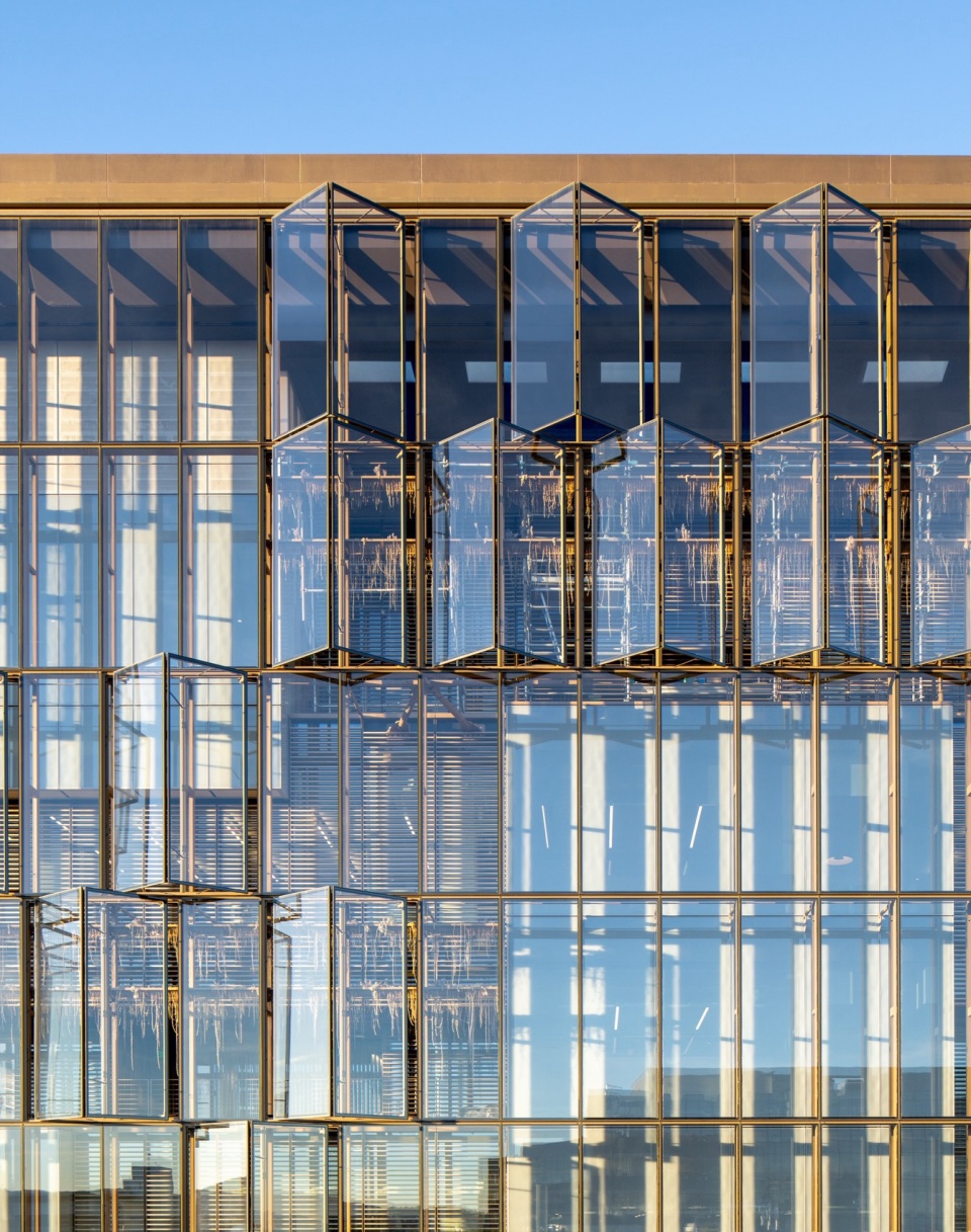 ▼可开启玻璃与固定围护共同组成可调节的立面界面,使建筑表皮真正参与自然通风与环境控制,Operable glazing and fixed enclosure work together as an adjustable façade, allowing the building envelope to actively participate in ventilation and environmental control