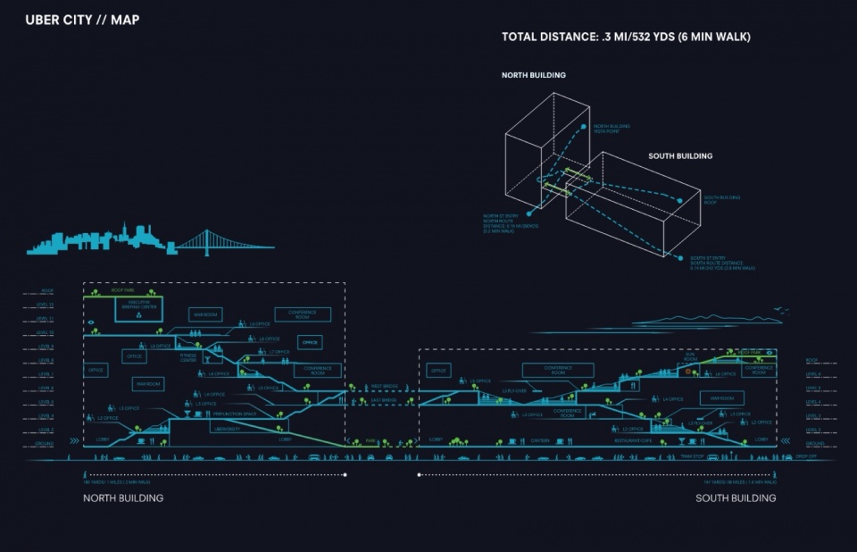 ▼Uber 总部最终呈现出的,并不是一个封闭的企业对象,而是一种能够回应街区、气候与共享空间的开放结构,What the Uber Headquarters ultimately presents is not a closed corporate object, but an open structure that responds to the neighborhood, the climate, and shared spaces