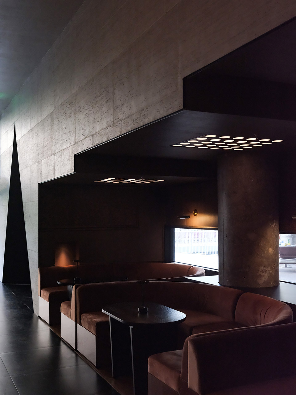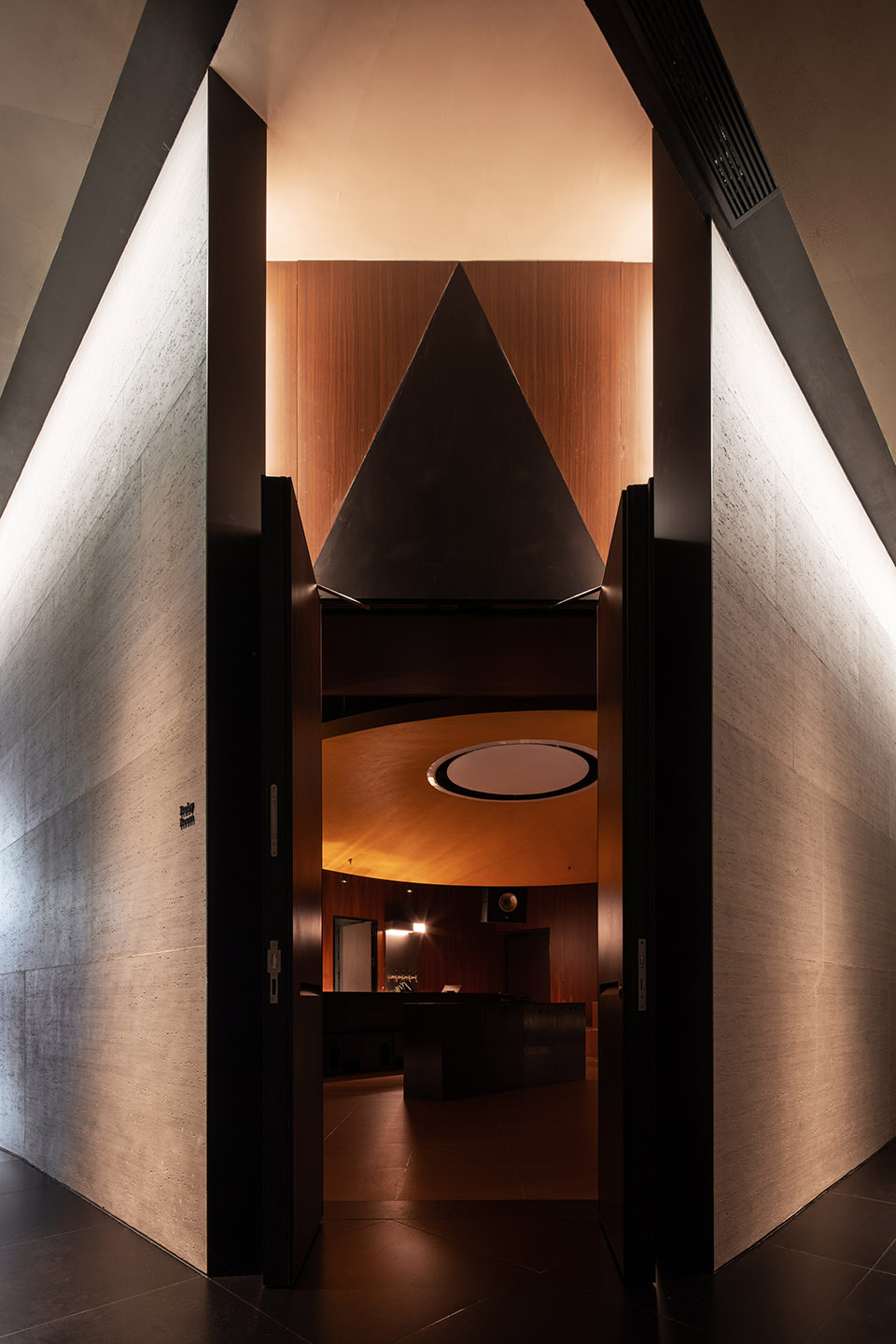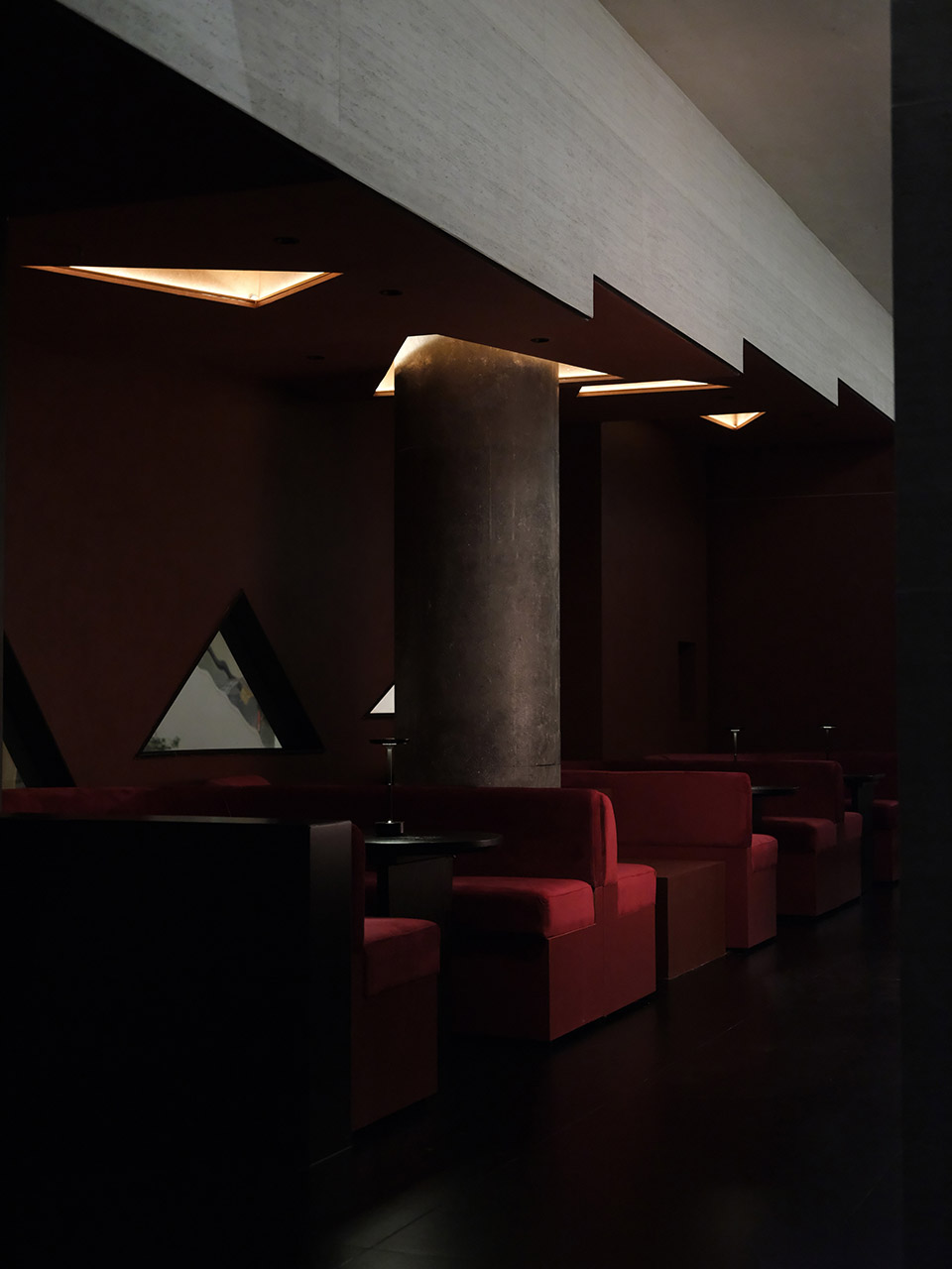 The largest “monolith” stands at the center of the circular layout, concealing a private party room inside. Its distinctive sectional structure and acoustic design create intense spatial contrast: shifting gently from a relaxed jazz ambiance to a powerful Techno rhythm, completing a full sensory journey within a confined space.