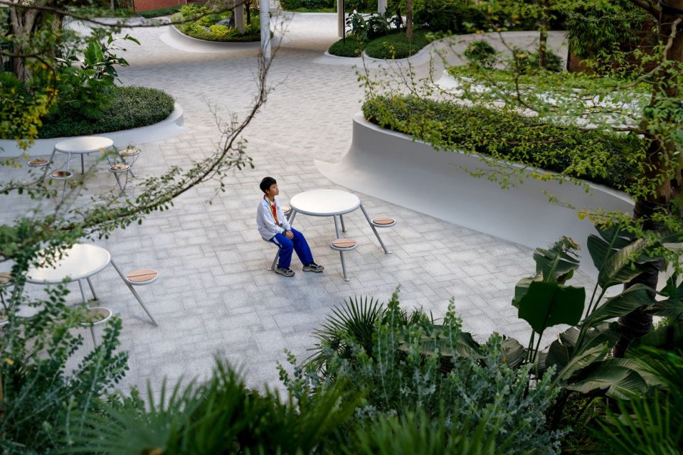 2025年暑期,改造延伸至校园中轴与多个建筑衔接区域。为那些在自然中学会观察、在协作中懂得沟通、在开放空间里激发创造力的个体,创造多元的户外教学与社交场景。景观,在此成为了教育哲学的载体。