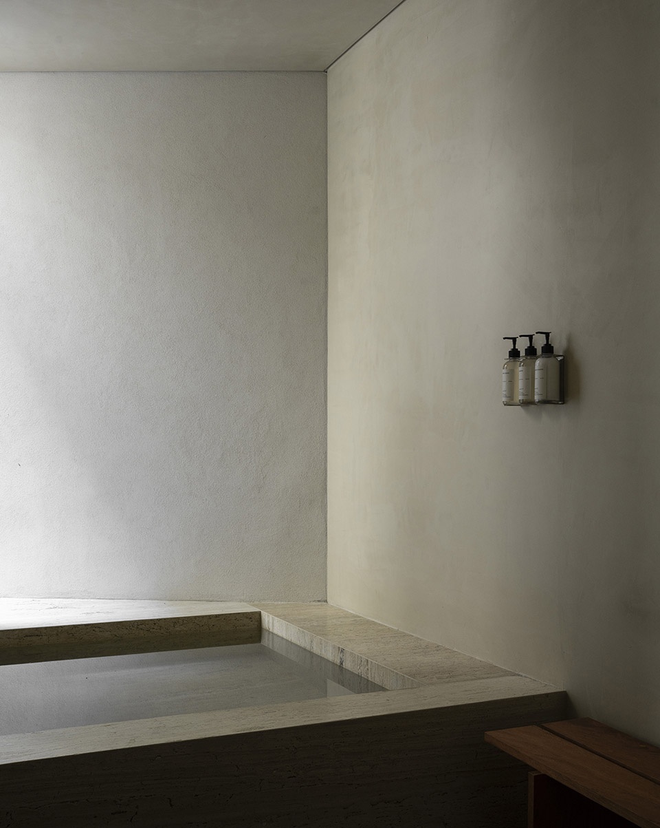 面向街道的主立面在开放性与私密性之间取得平衡。带阳台的客房通过一层半透明金属网进行保护,这一设计实现了两重效果:对外提供视觉遮蔽,对内则保持开阔视野。除视觉与空间作用外,该金属网还通过形成微气候来调节温度,有效降低直射阳光带来的热量积聚。