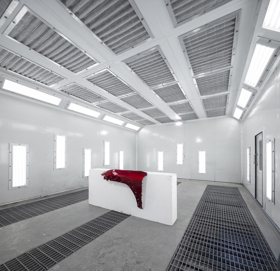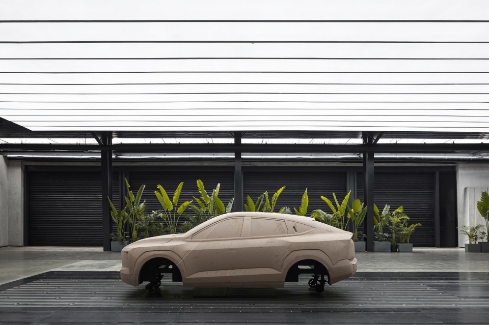 项目用地为21米×67米,位于现有设施南侧边缘,并沿原有庭院展开。该庭院被保留并拓宽,转化为景观化的公共交流空间。空间组织以一处8米×17米的中央“泥塑建模区”(Clay Bay)为核心,用于全尺寸车辆造型。需要封闭与可控光环境的功能——如喷漆房、调漆间与硬质建模区——布置在西侧;服务空间沿东侧既有工业厂房展开;面向庭院的一侧则布置茶水间、资料室与模型制作工位,充分利用自然采光与景观资源。