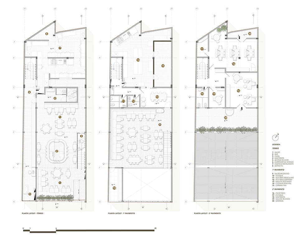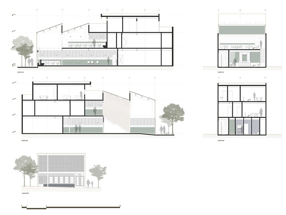 为实现这一愿景,设计团队购入了位于Mato Grosso街的两栋住宅,这些建筑此前已被改作商业用途。两栋建筑虽风格普通,却各具特征,在初次踏勘时即引起关注。最初方案意在保留原有结构,通过介入以容纳餐厅所需功能——从就餐空间到后勤支持——同时满足技术规范、市政法规与法律要求。