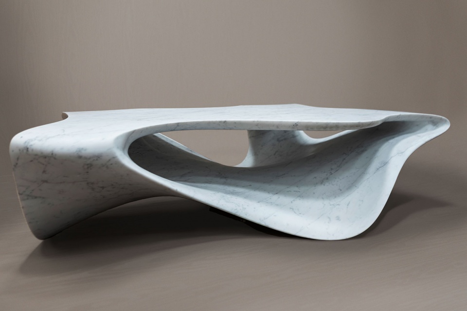 While the original pieces investigated the density and permanence of carved stone, the expanded collection introduces lighter, more tensile materials including carbon fibre, crafted leather and textiles—transitioning from a design language of weight and solidity towards embracing fluidity and layering. Together, the collection is a dynamic interplay between the solidity of marble and the softer, pliable materiality of the finest leathers, textiles and fibres. Exploring the processes that define form and structure in the natural world, the Erosion Collection blurs the boundary between furniture, landscape and sculpture.