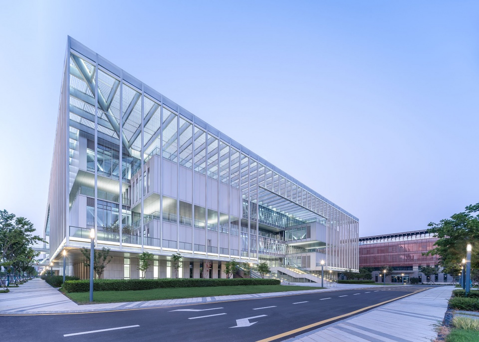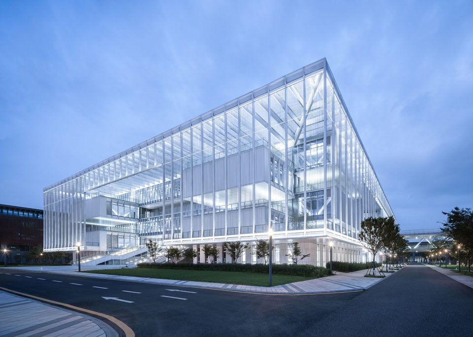 Composed of multiple cyber lab units, the building adopts modular square volumes to satisfy demands for large spaces, high flexibility and low structural interference. Staggered and interlocked with voids and overhangs, the masses form a Lu Ban lock-style grid layout. It echoes the interconnected and collaborative logic of cyberspace, and shapes a unique architectural identity for the campus.