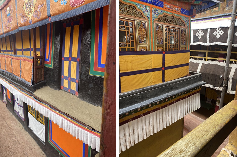 The project draws on long-term observation of Tibetan domestic and temple spaces, not through literal imitation but through the reinterpretation of spatial logic, material relationships, and tectonic memory. For the architects, Tibetan architecture offers a way of understanding space as something activated gradually through the body: through circling, pausing, ascending, and looking back. In monasteries especially, galleries around a principal hall do more than connect rooms. They produce a sequence in which movement, light, and hierarchy unfold together. Clerestory light is not used to illuminate space evenly, but to be filtered and redistributed by columns, beams, eaves, and balustrades, producing gradations from edge to center and from low to high. Another important reference is the role of textiles in Tibetan buildings. Draped over columns, walls, eaves, and windows, textiles are not merely decorative elements but active spatial devices. They filter light, provide climatic protection, preserve timber and painted surfaces, and introduce color and symbolic meaning. In this sense, ornament is understood not as applied surface treatment, but as an extension of construction memory. The project adopts this attitude by translating tectonic and textile logic across materials, allowing detail and atmosphere to emerge from structure rather than being imposed upon it. This approach also resonates with Gottfried Semper’s idea of “petrified carpentry,” in which formal memory persists through material transformation.
