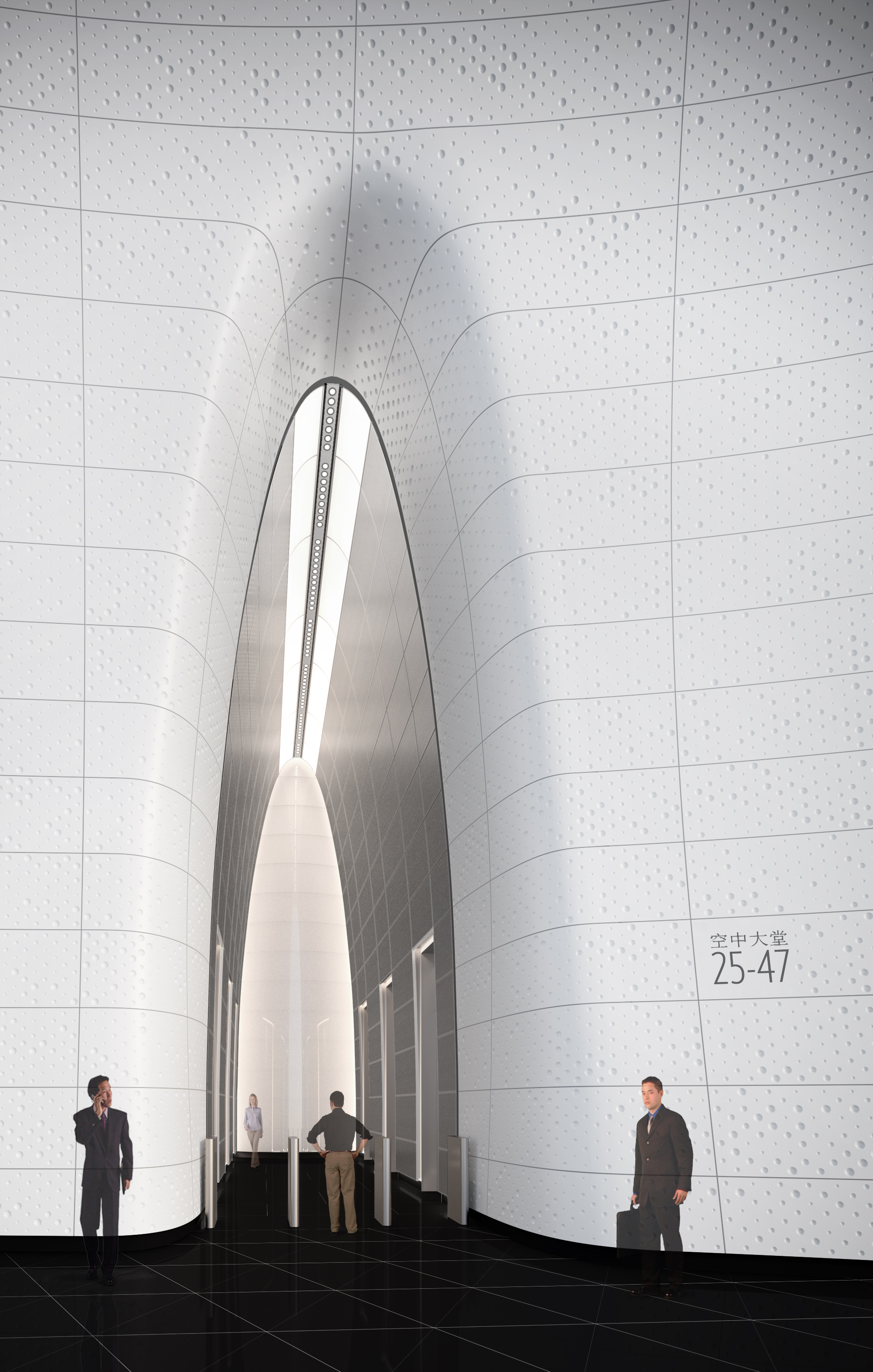 The lobby space on the first floor is more like the beginning of an epic for this 636 meter landmark along the Yangtze River. The design refines the living concept of the East and the West from the beginning, and innovatively integrates the modern "curtain wall" of the West and the ancient "enclosure" characteristics of the East into the design idea of "enclosure between halls".