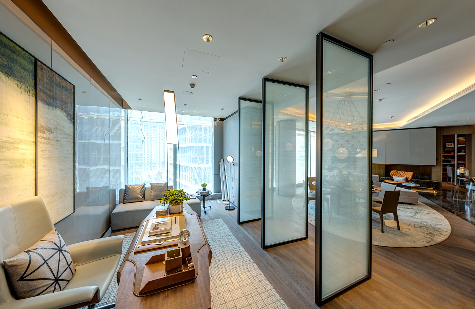 As the function of the executive lounge in the hotel, 66F is a unique design of the president's residence of Wuhan Greenland. It draws the high-end and exclusive sense of dignity from the hotel design, and also makes a customized design of lifestyle for future residents.