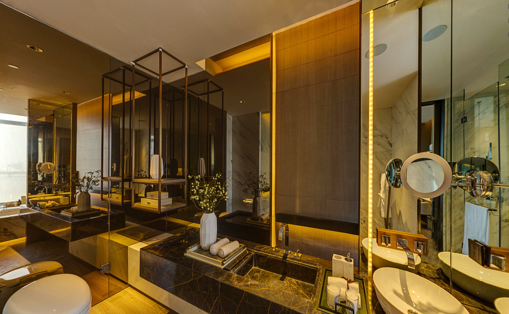 These elements integrated into the oriental traditional residential charm are organically arranged on the flow line into the lobby, which makes the natural graben of the Yangtze River and the modern buildings standing in the clouds melt the cold and sharp, and makes the connection between indoor architectural space and landscape vivid.