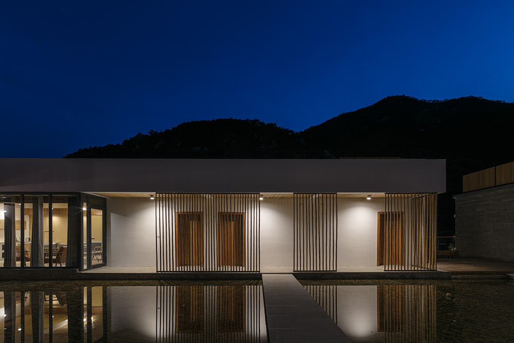 沂蒙山水舍紧邻沂蒙山舍,是沂蒙山舍民宿的延续,水舍增加了地库、餐厅、会议室、泳池等民宿公区配套和12个客房。