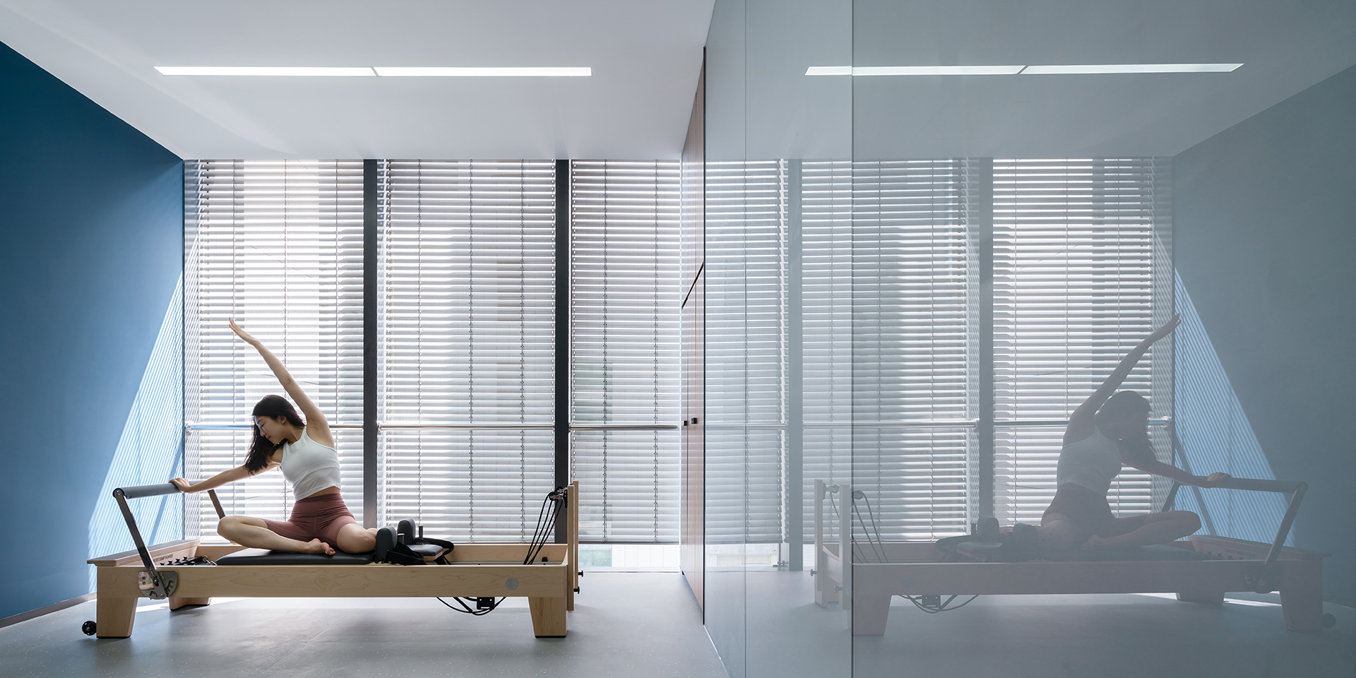 沿着亚克提室前面的方向走着的亚克提室上方的光线,是一线天光的追踪镜头,精准的望出去吊运治疗室、理疗室及评估室。每个房间配备了专业的康复功能设备和专业设备,客户可以与医生自由交流。灰色背景漆玻璃、木柜体、蓝色治疗室及大治疗室宽敞舒适的空间感,更让房间的风格窗户明亮,配备先进的设备则为增加一分科技平衡,创新的设计方式和材料应用,将WER作为国内康复领域的领军运动淋得淋漓尽致地占主导地位。