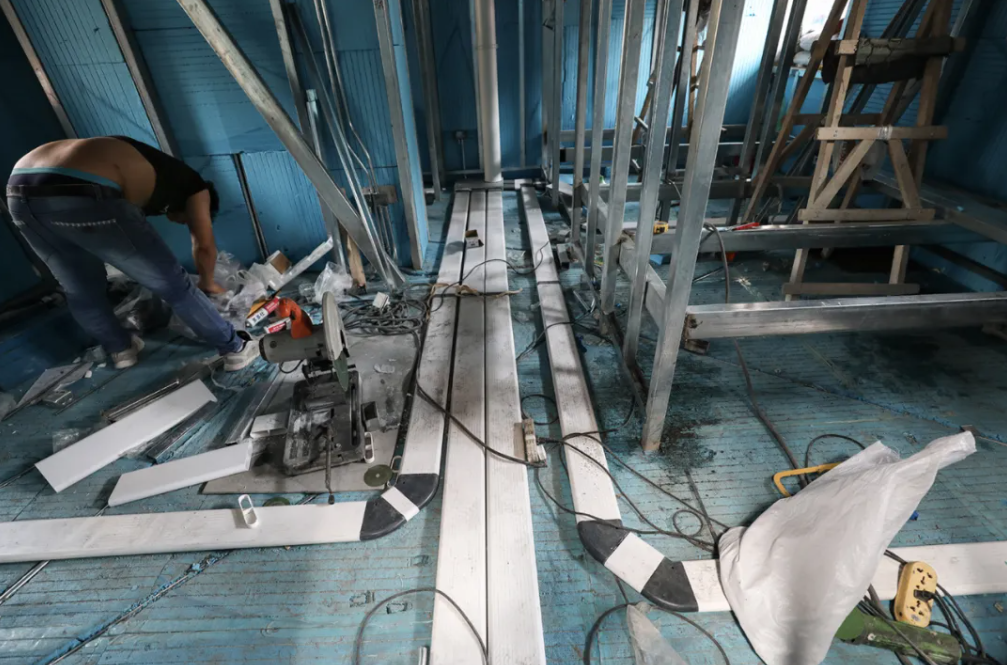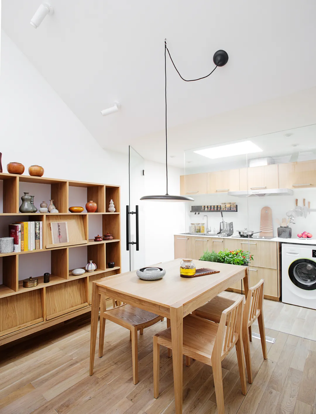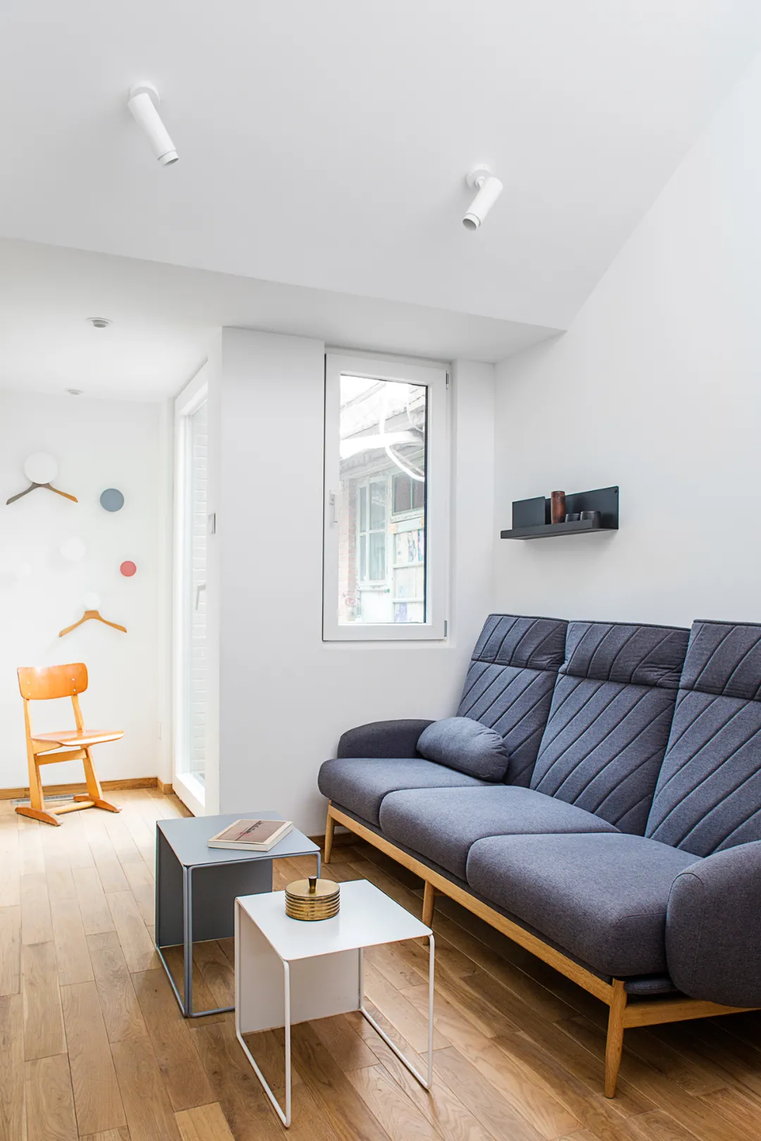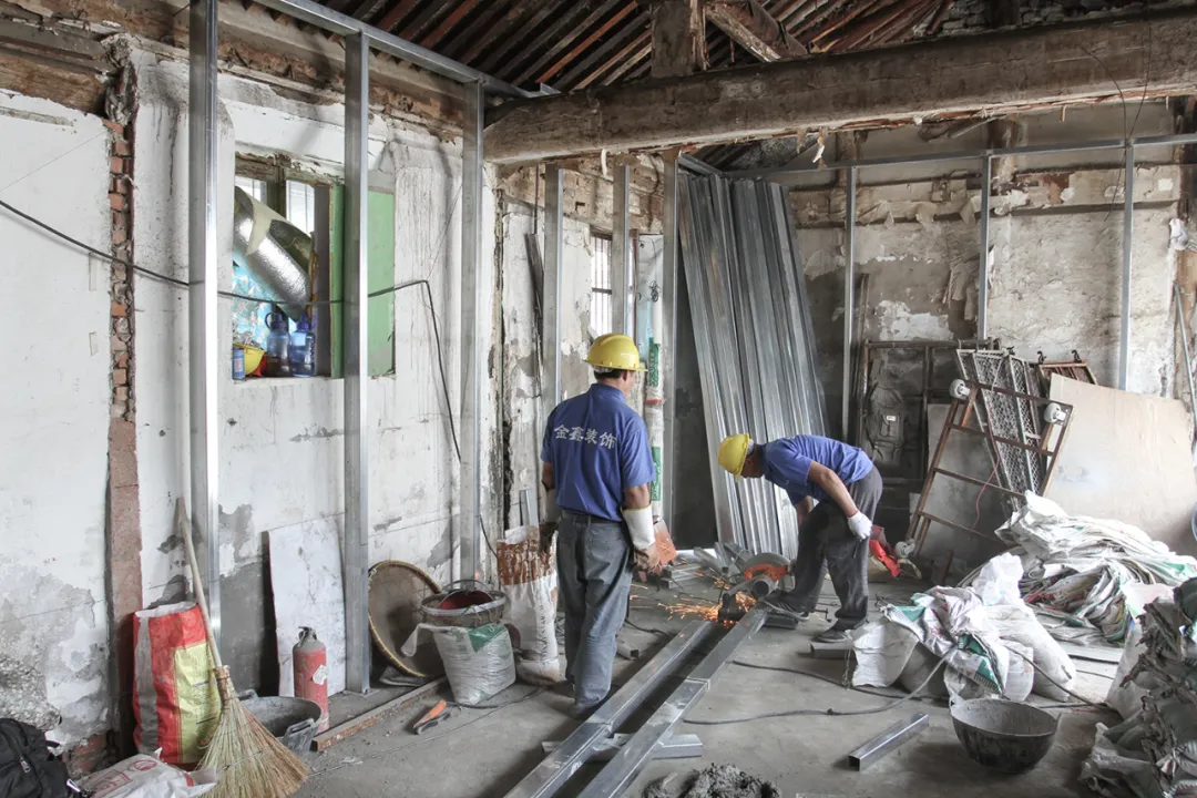 首先为了避免长期以来胡同住宅存在的诸如问题例如墙面返潮的恶劣问题,我们为改造提出了一个“屋中屋”的设计概念。当我们拆除所有多余的墙体,只保留屋顶和立柱时,看到很多木质结构由于长期潮气的侵蚀,变得很脆弱,所以我们的设计就像小燕子找到一个屋檐,在底下搭出一个新的房子似的。老的屋顶就像一个雨棚,从里面再盖出新的房子。除了重新设计房屋,我们答应业主在北京的一个最本质的东西:清新的新鲜空气!