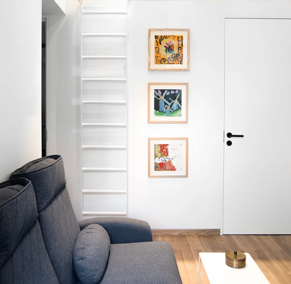 一个能量回收新风系统将确保舒适的室内气候和一个连续控制气流清洁空气做的集成PM2.5过滤器。该系统具有能量回收功能,全年可实现制冷和采暖高峰,降低了住宅的整体能耗。除了4间卧室外,小公寓还提供客厅、餐厅、夹层阅览室、厨房和浴室。2个新的天窗提供额外的日光。“屋中屋”的概念可以避免与破旧建筑之间的接口,使之具有新的当代面貌。