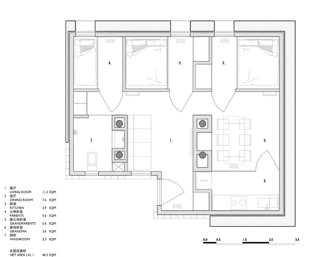 院子的所有权在过去的历史中被5个家庭分割。不幸的是,它主要用于存储。面对邻里复杂的社会环境,新房子的外观被设计成一个相对内敛的空间,因为庭院不能作为社会聚会的质量空间。