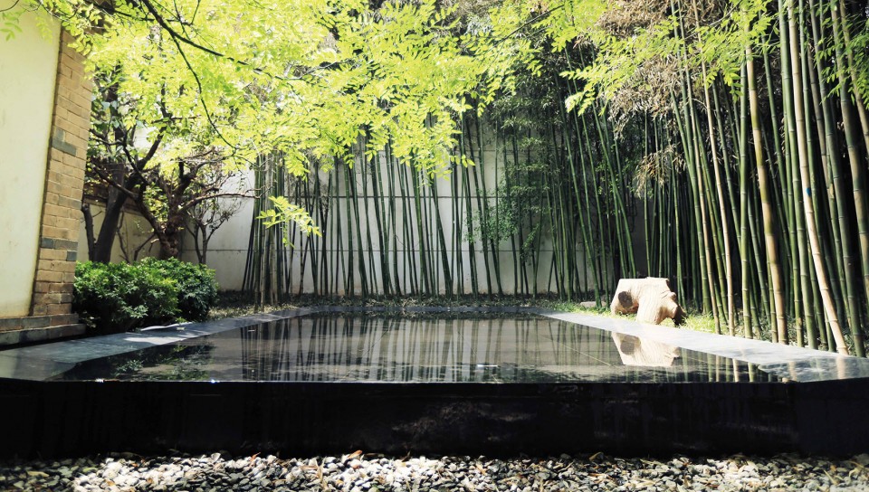 The pattern of the original site is quite cramped, therefore, the first thing was to open a “window” of the courtyard in spatial level for continuing the sense of returning to space at the most extent; by using the handling strategies of traditional garden space as reference, the design changed the original stream into mirror-like waterscape, which achieved that buildings in the old house and the original bamboo forest within the site can be seen through the reflection of mirror-like water.
