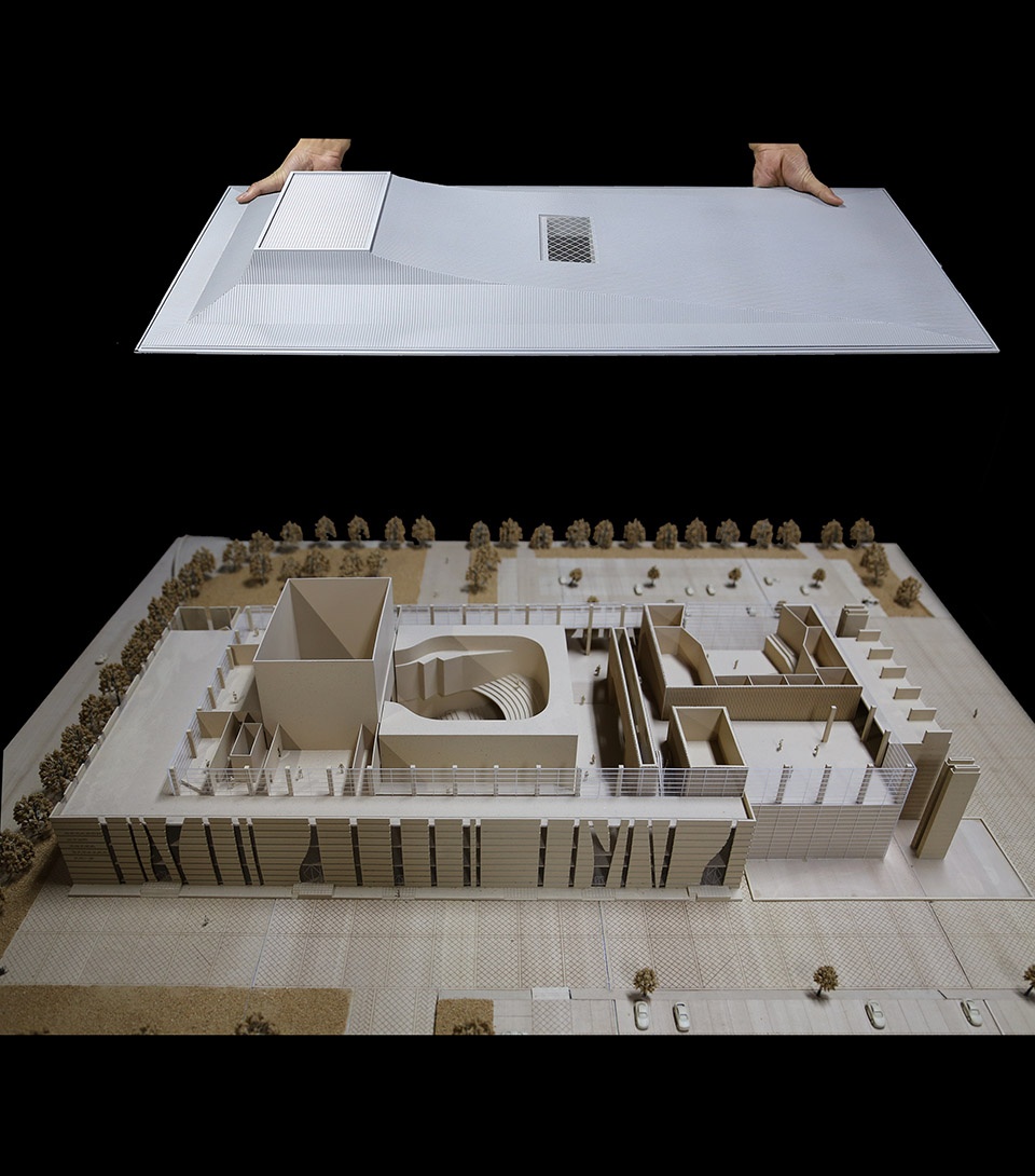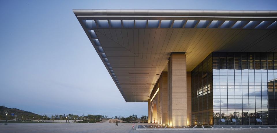 External facade material mainly are art concrete, glass, metal: with familiar taste of the Loess earth, the skin texture of art concrete is closer to nature, like the gully. It creates the feeling that the building is growed out of the earth. The shape of the roof is stronger in style, which adds modern and open atmosphere. Meanwhile, the connection of glass curtain wall makes roof to be lighter and more simple.