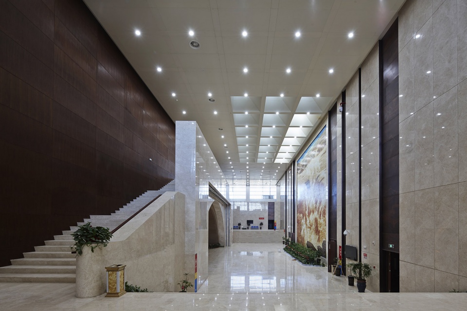 Yanan traditional architectural element cave dwelling, the main design factor, fully endow the architectural features; The building realized unity from out-to-in and is developed with simple square bodies interspersed with each other; 21 meter high large cantilevered space naturally form the main entrance.